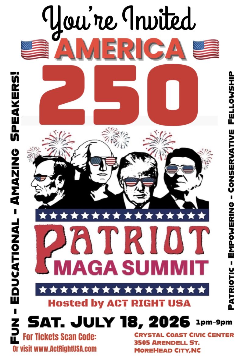 Join us as we celebrate America’s 250 year celebration with amazing fun, food, entertainment, mind-blowing multiple speakers, providing learning opportunities and fantastic factual information, pro American vendors, local and national groups, and so much more. All this while empowering patriotic conservatives and sharing fellowship at a whole new level. Sharing and celebrating American exceptionalism, as well as 250 years of Freedom in the greatest country in the world.