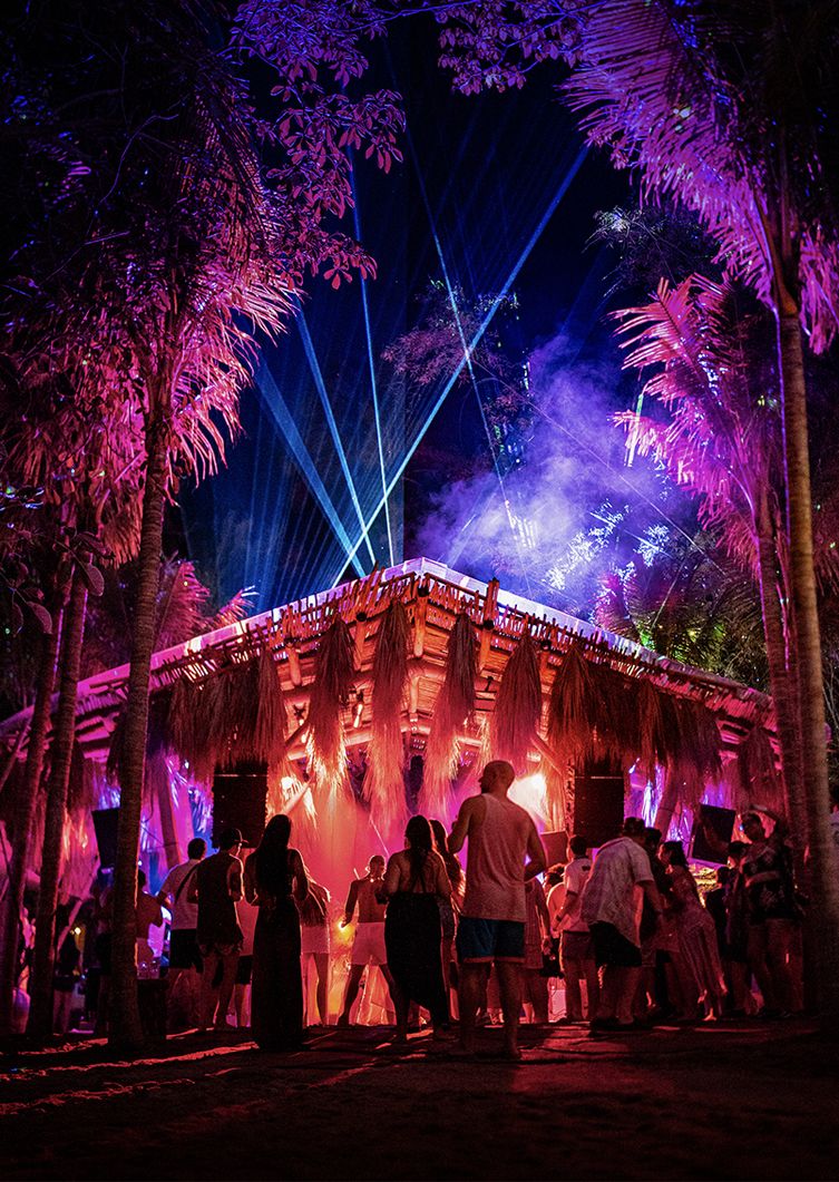 With your feet in the sand, we invite you to live a multi-sensory sound experience. Electronic music and an impressive laser lights show come together to create an incomparable dance environment.