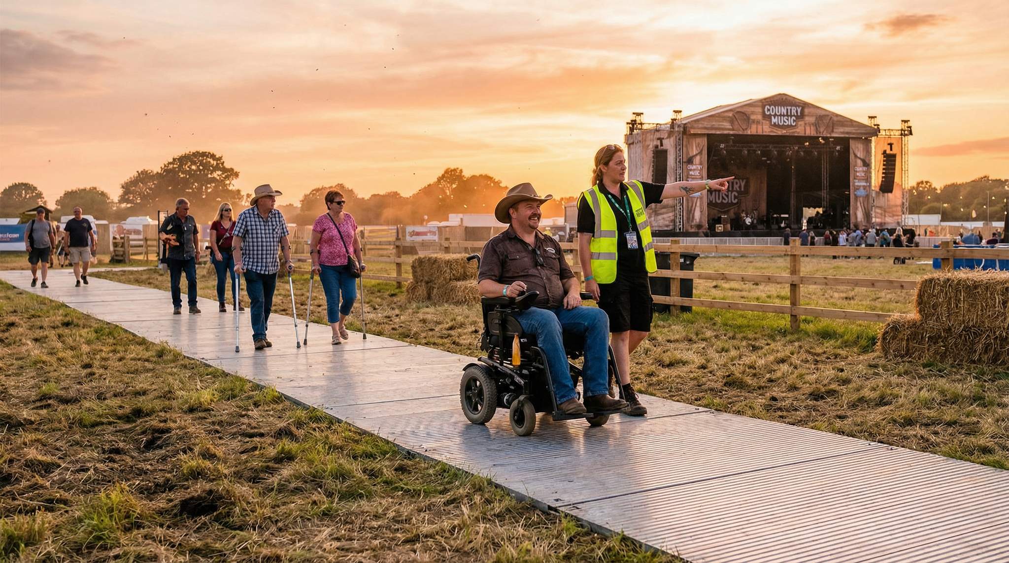 Plan Accessible Pathways from the Start: When mapping out your site, identify the flattest possible routes between key areas. If your country music festival is on a ranch or fairground, walk the terrain and note any steep inclines, holes, or rocky patches. For any unavoidable slopes, measure the gradient and decide if you need to create an alternate route or install a ramp. A steep hill that able-bodied fans barely notice can be a massive barrier for someone in a wheelchair. In one unfortunate case, a UK festival placed its accessible entrance at the top of a hill with a 10% incline, causing wheelchair users to struggle or even roll backwards (metro.co.uk). Such scenarios underscore why access routes should be as level and firm as possible.