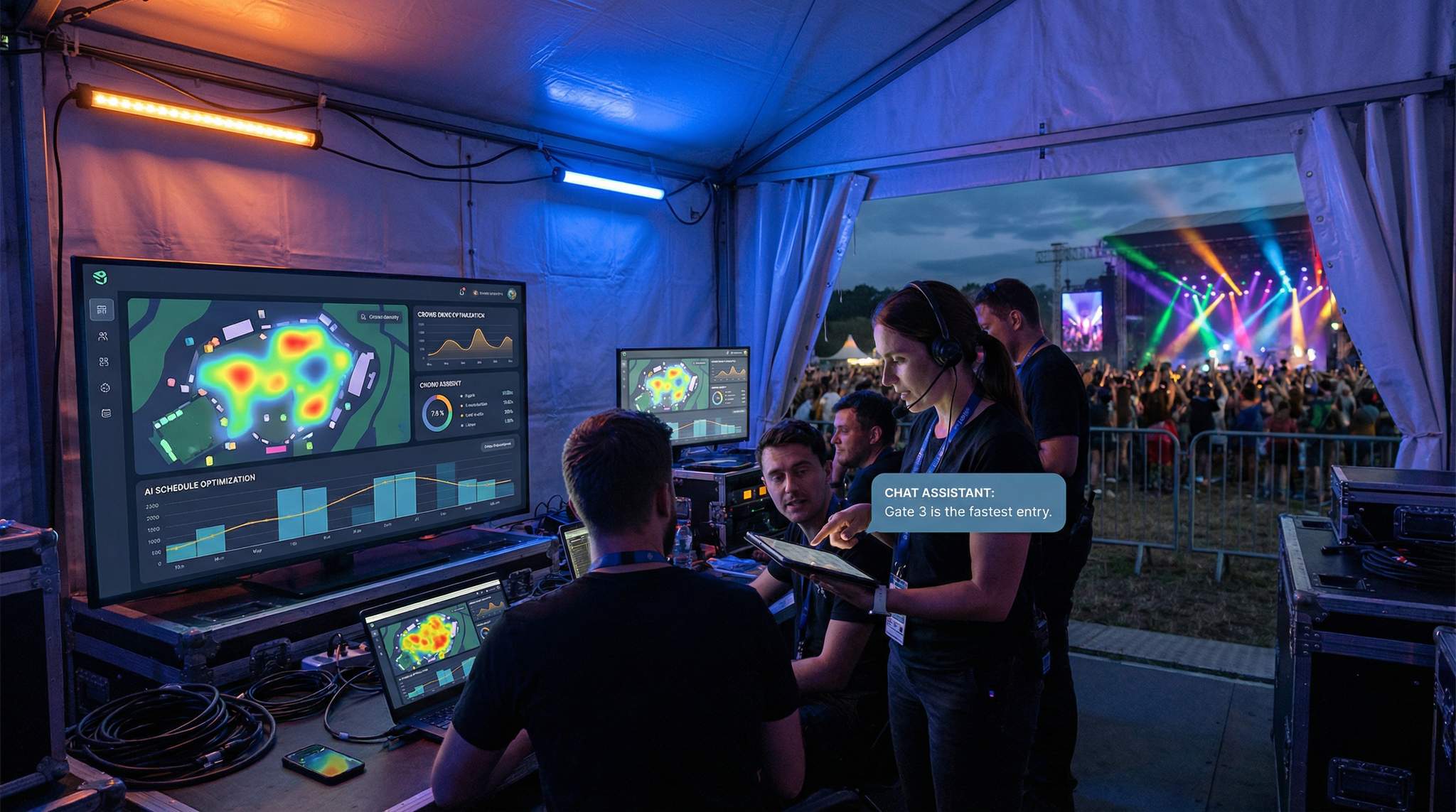 Behind the scenes, one of the most critical uses of AI during a festival is improving safety. Crowd management has always been a top priority for producers, and AI offers new eyes and ears to anticipate problems. Advanced AI vision systems, for example, can monitor CCTV camera feeds in real time to detect unusual activity or crowd surges that human monitors might miss. If one section of the field starts seeing a dangerous density of people or an unexpected movement (like a crowd suddenly pushing in one direction), the system can immediately alert the control center. This technology was recently tested at large events – for instance, a famous film festival in France deployed AI-powered cameras to keep watch over bustling red carpet areas. In a music festival context, similar systems can help security teams react faster by pinpointing where a developing issue is before it gets out of hand.