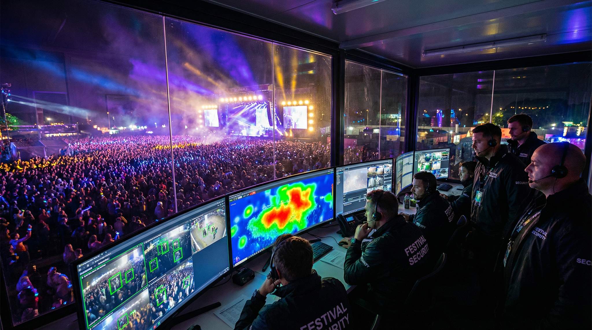 Another game-changer is utilizing artificial intelligence in video surveillance to automatically monitor crowd conditions. AI-based video analysis systems can be connected to CCTV cameras around the venue. These intelligent systems count people and measure crowd density in real time, far faster and more accurately than any human scanning camera feeds. When the AI detects that a crowd is getting too dense or movement has slowed dramatically (a potential sign of congestion or distress), it can immediately send an alert to festival control. For instance, if the crowd in front of a stage exceeds a safe threshold (say, too many people per square meter), the system flags it so staff can temporarily halt more people from entering that area. In some advanced setups, the AI can even recognize patterns like a sudden surge of people pushing in one direction or individuals falling, prompting instant alarms.