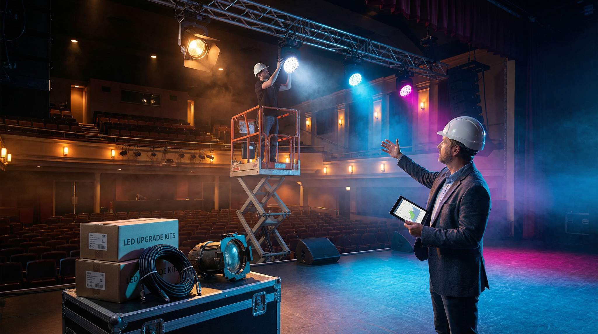 Utility bills often rank just below labor as a venue’s biggest expense – especially at larger sites with massive lighting rigs and climate control systems. Cutting energy waste is a classic example of saving money without sacrificing quality. In fact, many green upgrades improve the audience experience (better lighting, more comfortable climates) while shrinking the bills. Lighting is a prime target: Replacing old incandescent and halogen bulbs with LED fixtures can cut lighting power usage by 70% or more, ensuring stage gear is chosen with power consumption in mind and installing LED stage lighting. LEDs also last far longer, meaning fewer replacement costs and less risk of a bulb burning out mid-show. One case study comes from the 2,500-seat Central Hall Westminster in London, which retrofitted over 900 fixtures with LEDs. The venue invested about £80,000 upfront but immediately saw dramatically lower electricity draw – they reported the project paying for itself via energy savings in just 3–5 years, demonstrating practical upgrades to cut carbon and costs and resulting in a brighter, better experience. On top of that, smart lighting controls (motion sensors, programmed schedules) ensure that lights aren’t left blazing in empty rooms or after hours, a key part of venue sustainability in 2026. Many venues now install systems to automatically dim or shut off non-essential lights during a show (e.g. lobby or back hallways not in use) and bring them back up only when needed. The bottom line: modern LED and control tech delivers the same or better light quality for a fraction of the energy cost, with a rapid ROI.