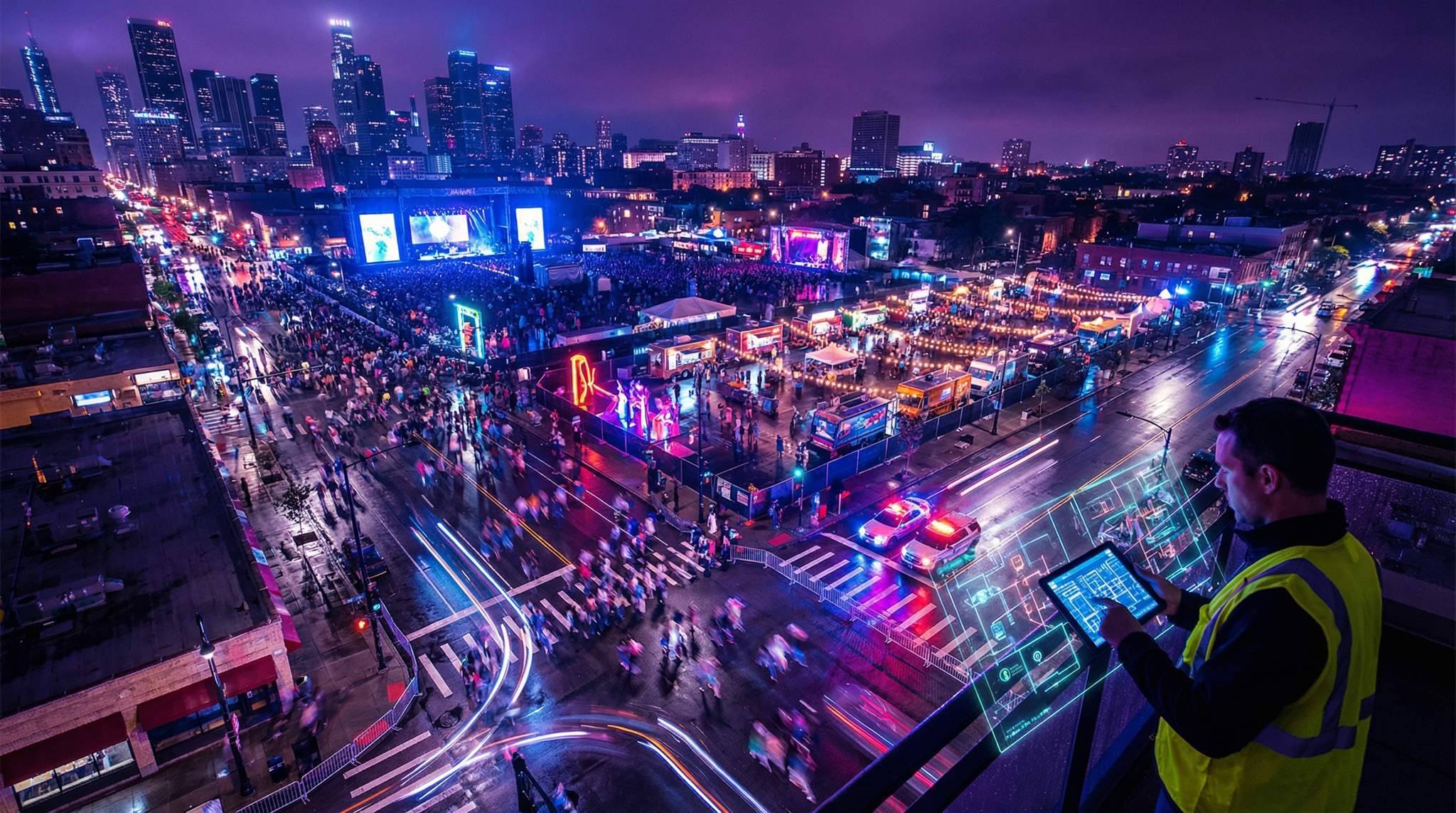 To illustrate how these elements come together, imagine planning a multi-block city festival in a downtown district: