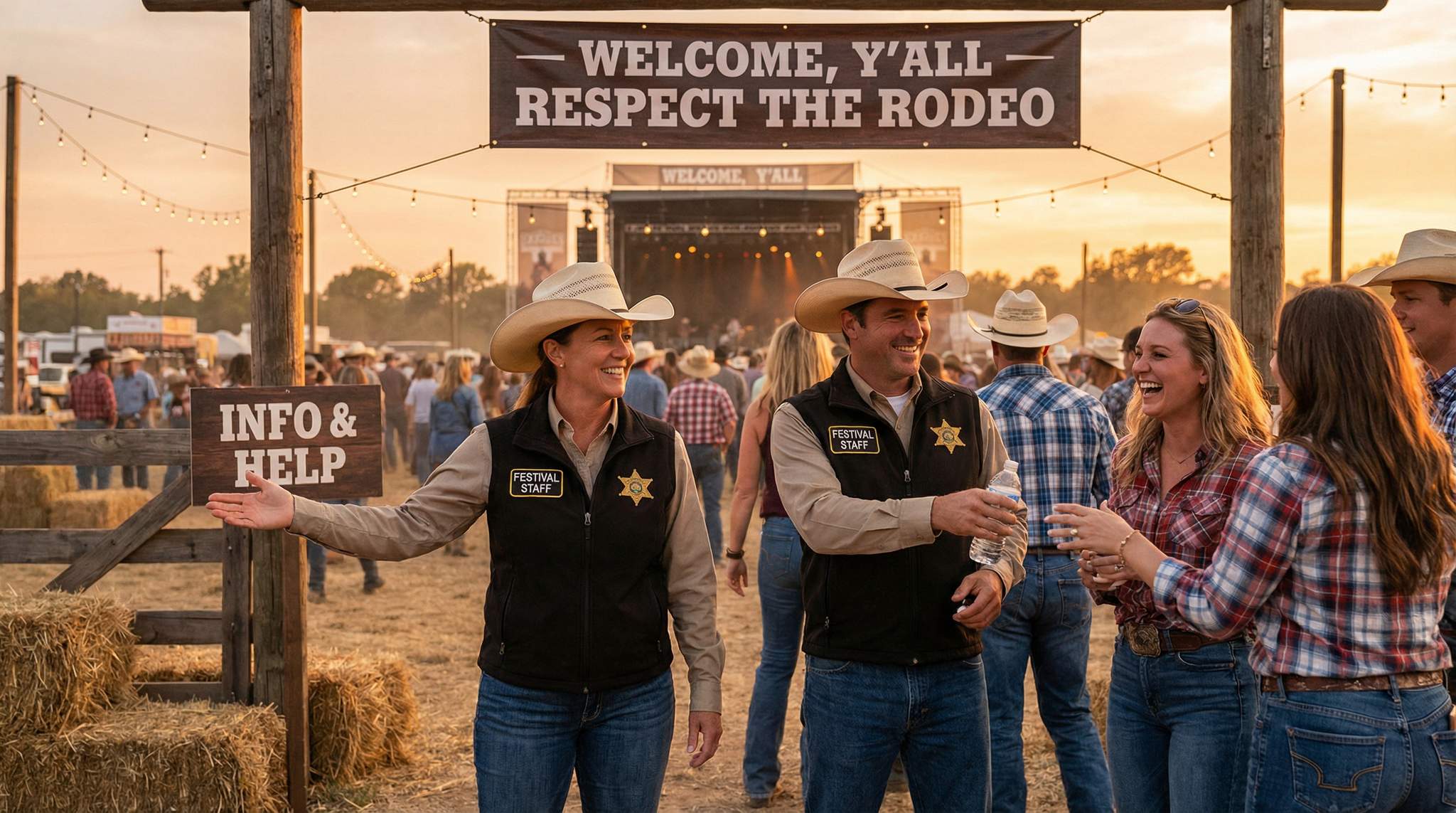 Guest Service Teams: By contrast, staff designated to help attendees (with directions, answering questions, assisting distressed patrons, etc.) are there as the “good guys” in the eyes of the crowd. At some country festivals, these might be local volunteers or hired hospitality staff wearing cowboy-themed attire to match the event. They roam the grounds ready to lend a hand, and because they aren’t also tasked with enforcing every rule, festivalgoers naturally trust them. A clear example is the Calgary Stampede (more rodeo than music festival, but still relevant) where white-hatted volunteers called “White Hatters” greet visitors and answer questions, complementing the security officers who handle bag checks separately. Two teams, one goal: a safe, happy crowd.