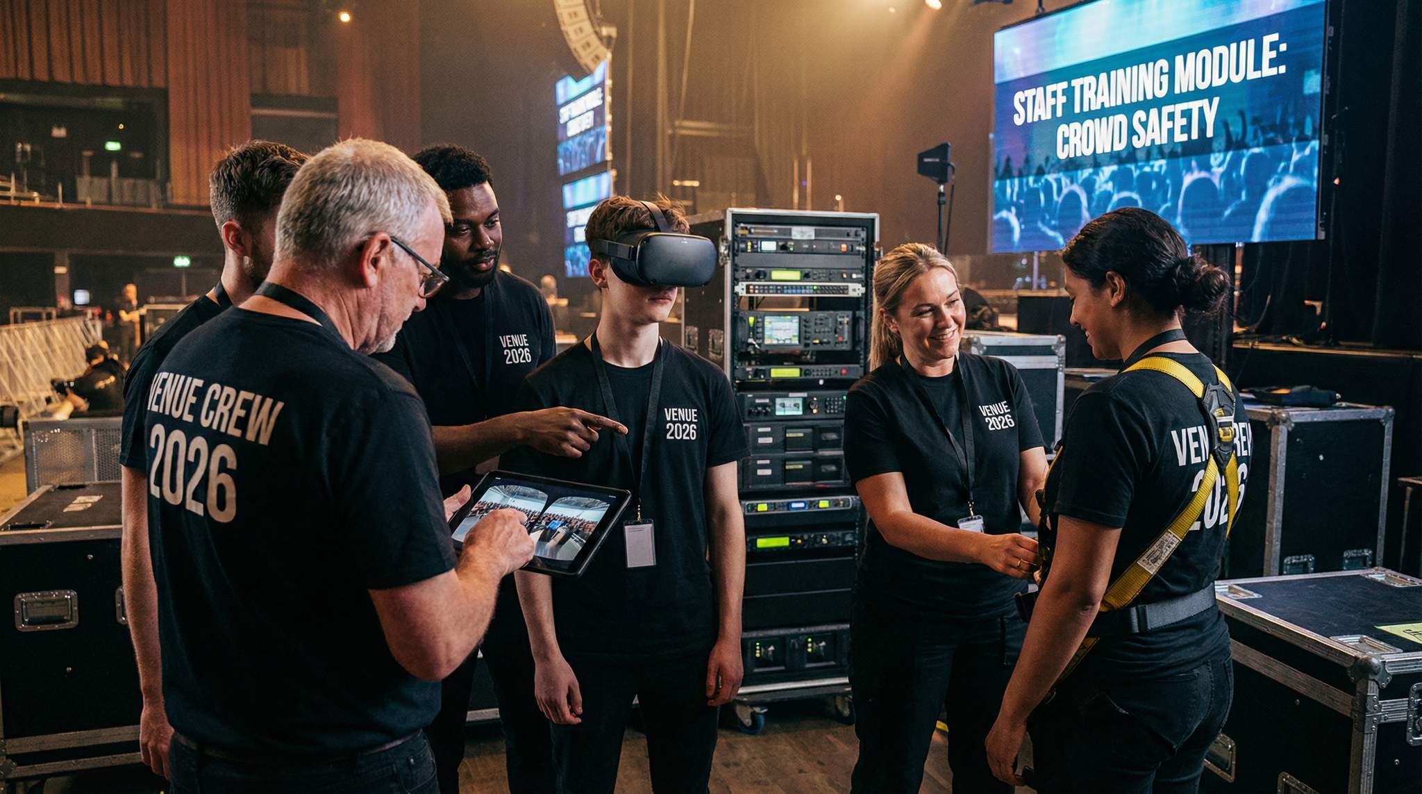 In 2026, virtual reality (VR) has emerged as a game-changer for venue staff training. VR’s immersive simulations let your team practise high-stakes scenarios in a safe, controlled environment. Progressive venues are using VR to drill everything from crowd surges to active shooter scenarios. By donning VR headsets, security and front-of-house staff can virtually navigate a packed arena, manage a panicked crowd, or respond to an onstage accident – all before they ever face these situations in real life. Early adopters report impressive results: a recent pilot across several major US stadiums found that while only 56% of participants initially believed VR could improve training, 83% left convinced of its effectiveness, and they felt 275% more confident applying what they learned. Those are staggering jumps in confidence and engagement. A well-designed VR module can “stress inoculate” staff – for example, simulating the chaos of a sudden evacuation so when a real alarm goes off, employees respond calmly and decisively. Venues like large sports arenas have even trained ushers and security with VR walkthroughs of their venue, simulating rowdy fan behavior and emergency responses. The Orlando Magic’s Amway Center, for instance, was highlighted in industry press for piloting VR training to prepare its guest services team for playoff crowds. Smaller venues are also taking note – VR solutions are becoming more affordable, with companies offering libraries of safety and operations scenarios that can be tailored to any venue. Imagine your new hires “virtually” working a sold-out concert on their first day, so by showtime they’re already a step ahead. That’s the power of VR in 2026.