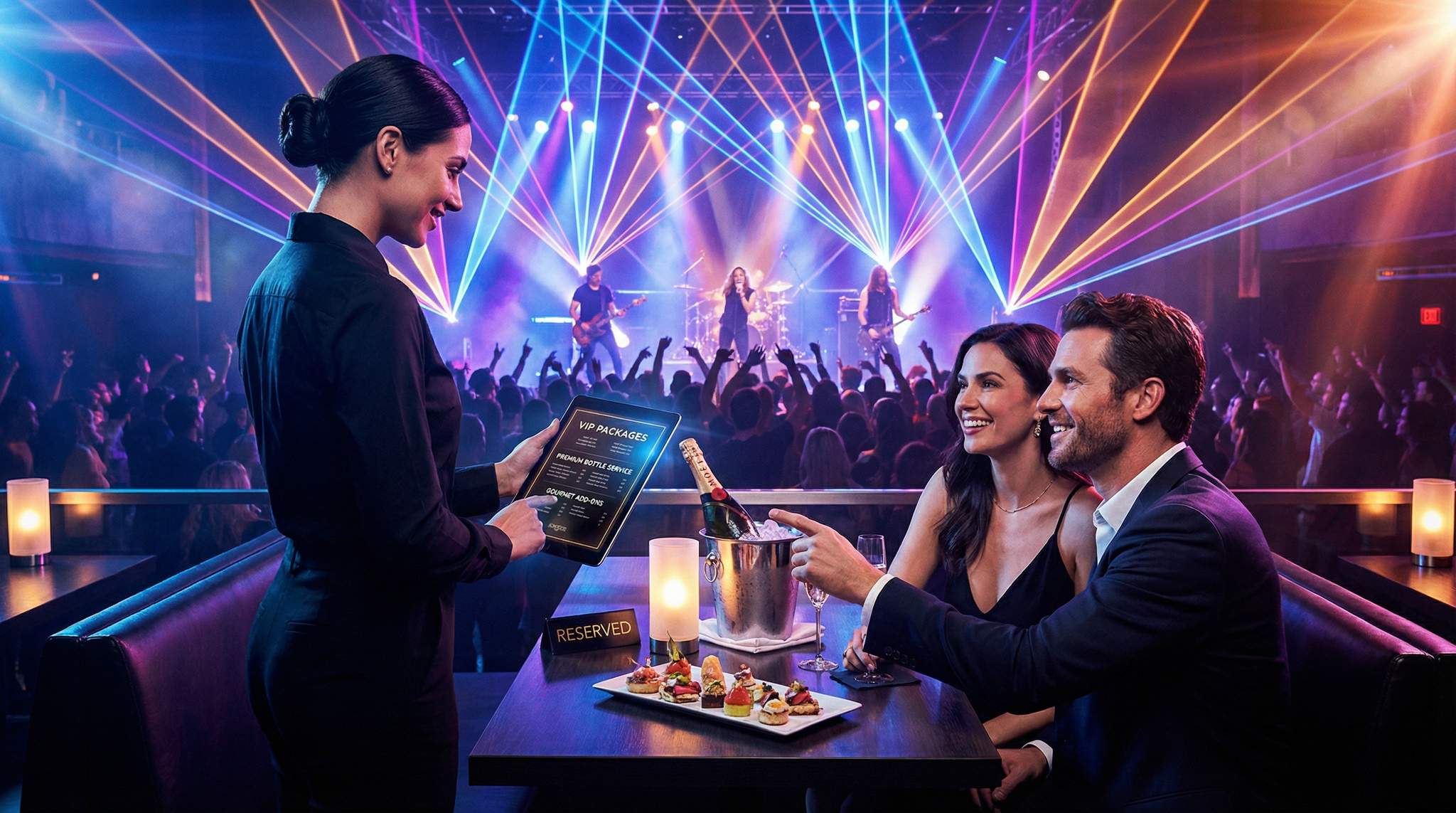 - “VIP Table” Reservations: These typically include a reserved table in a prime location (like a balcony with the best view or a roped-off section near the stage), dedicated table service, and often a bottle or two of premium liquor with mixers (bottle service). You can price these packages at a high premium. For example, a table for four might cost a flat $500 for the night but include $300 credit in drinks, a dedicated server, and maybe a platter of snacks. Fans who want a special night or to celebrate an occasion will jump at this, especially for popular shows. Venues in major cities have long employed this model – it’s not uncommon for a hot club show in New York or London to offer a $1,000+ table package for those seeking a luxury experience.