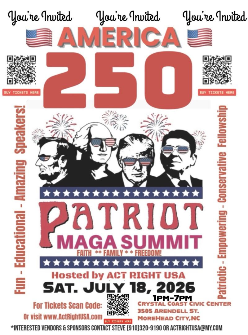 Join us as we celebrate America’s 250 year celebration with amazing fun, food, entertainment, mind-blowing multiple speakers, providing learning opportunities and fantastic factual information, pro American vendors, local and national groups, and so much more. All this while empowering patriotic conservatives and sharing fellowship at a whole new level. Sharing and celebrating American exceptionalism, as well as 250 years of Freedom in the greatest country in the world.