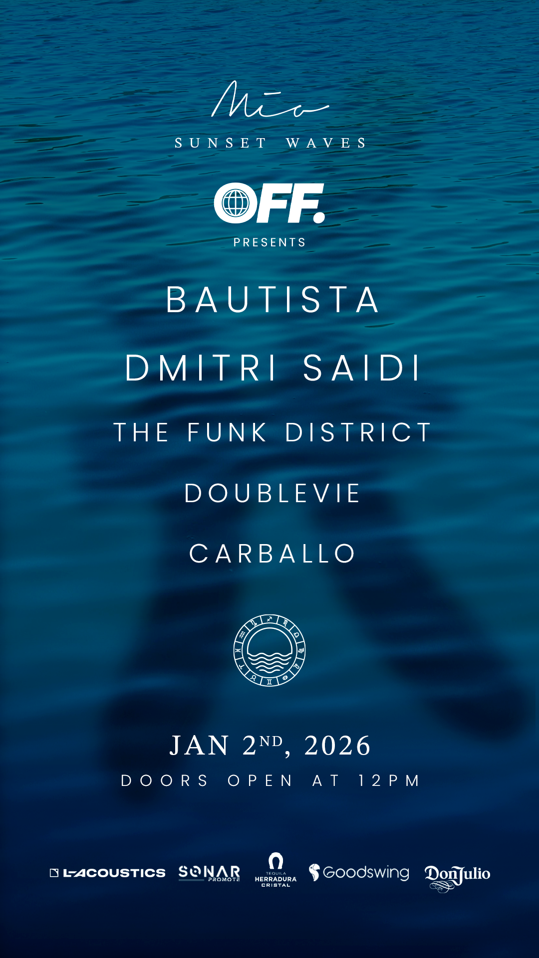 From noon into sunset, surrender to deep melodies and liquid grooves curated by Bautista, Dmitri Saidi, The Funk District, Double Vie & Carballo.