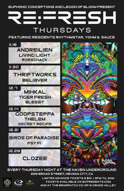 Re:Fresh Thursdays is a new Thursday weekly at Haven Underground - it is bringing a refreshing take on electronic music, art, and community to an intimate venue in Nevada City - every single week, for affordable ticket prices.