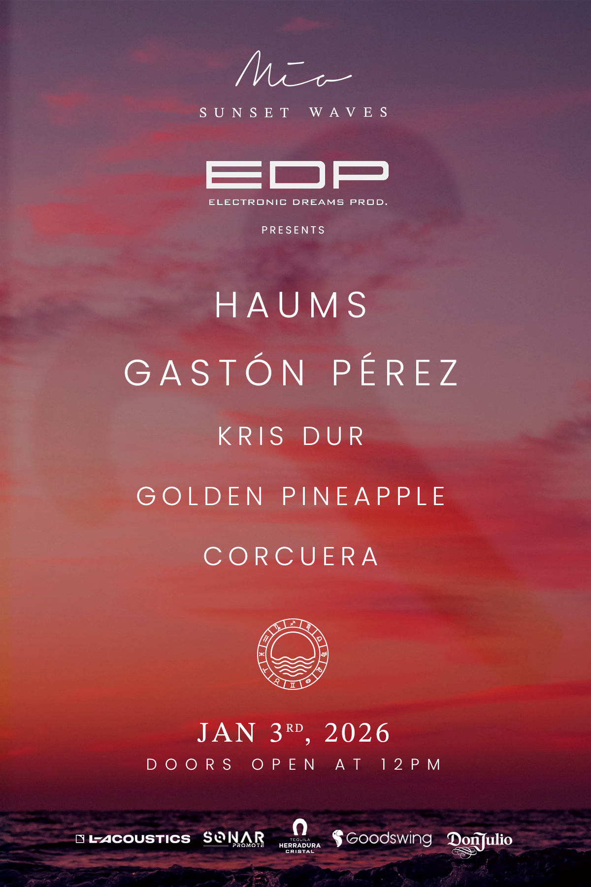 From noon into sunset, expect pulse, electricity and fearless movement. HAUMS, Gastón Pérez, Kris Dur, Golden Pineapple & Corcuera guide the soundtrack sets designed to spark momentum and carry it through peak energy.