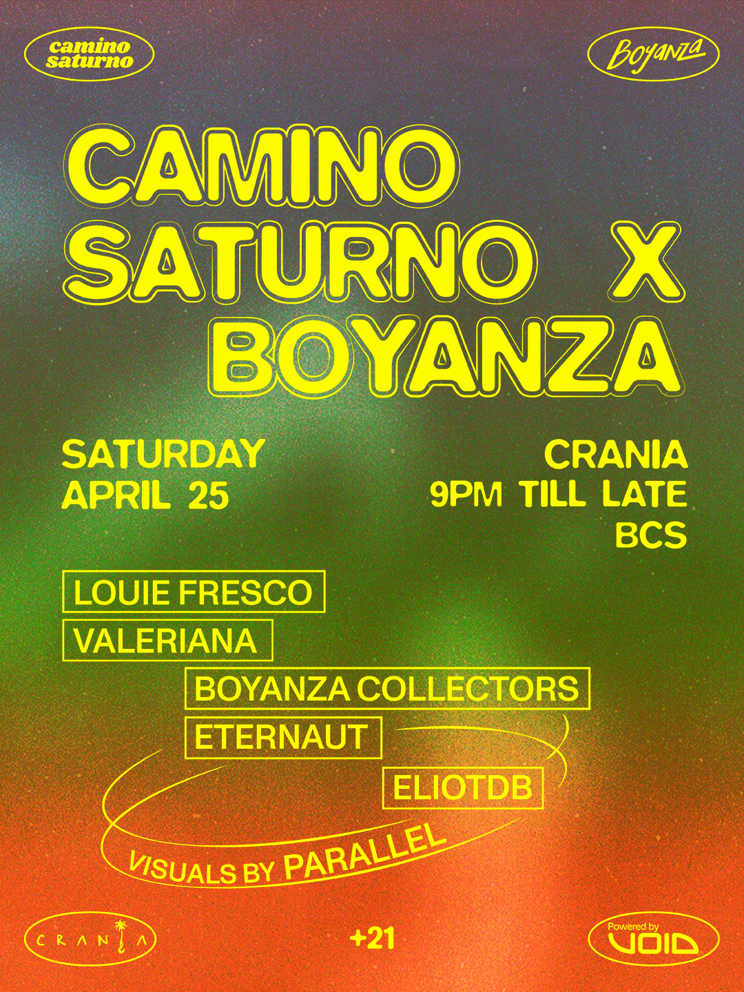 On Saturnday April 25, Camino Saturno returns to Crania feat. Boyanza