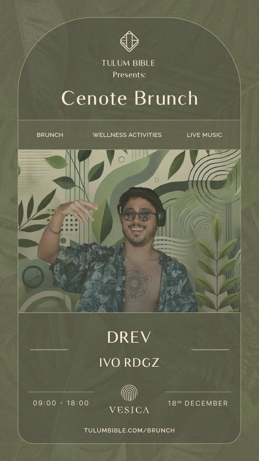 Cenote Brunch is a new event series taking place at Vesica Cenote in Tulum, starting at 9 AM. It’s the perfect way to spend your day—whether you’re looking to to dance or just relax while enjoying great music, food, and the stunning cenote.