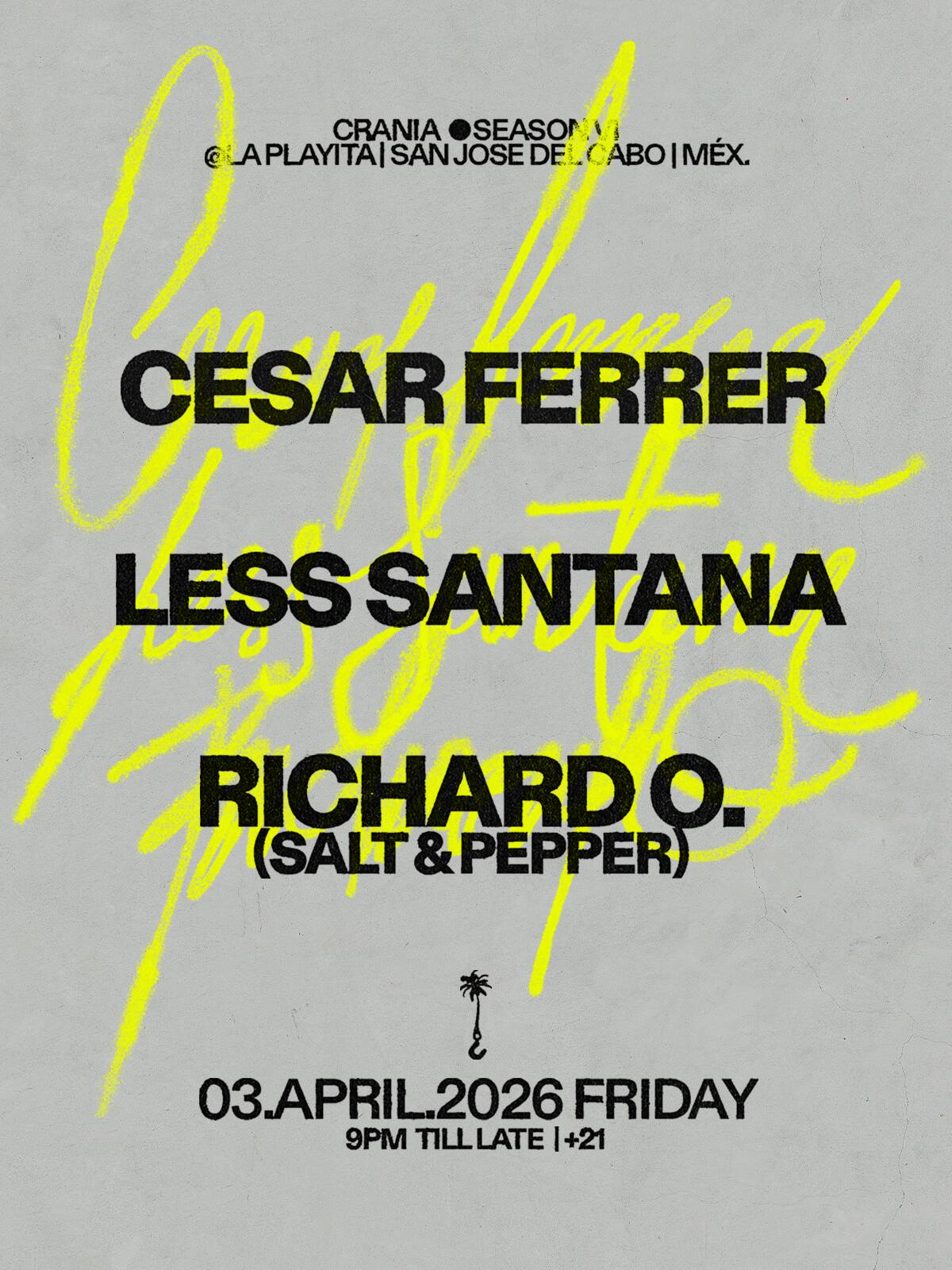 Cesar Ferrer leads the night with a sound that balances energy and control, while Less Santana and Richard O. (Salt & Pepper) build the flow from start to finish.