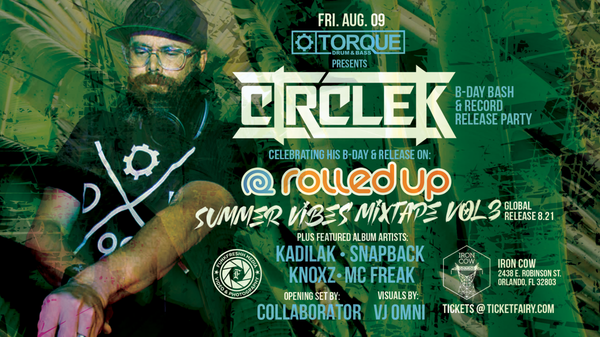 Torque presents Circle K's Bday Bash & Record Release party. Celebrating his birthday and release on Rolled Up Records Summer Vibes Mixtape Vol. 3, Circle K is set to bring the ruckus for this special occasion. Also performing Kadilak, Snapback, Knoxz & MC Freak. Opening set by Colllaborator. Live visuals by VJ Omni.