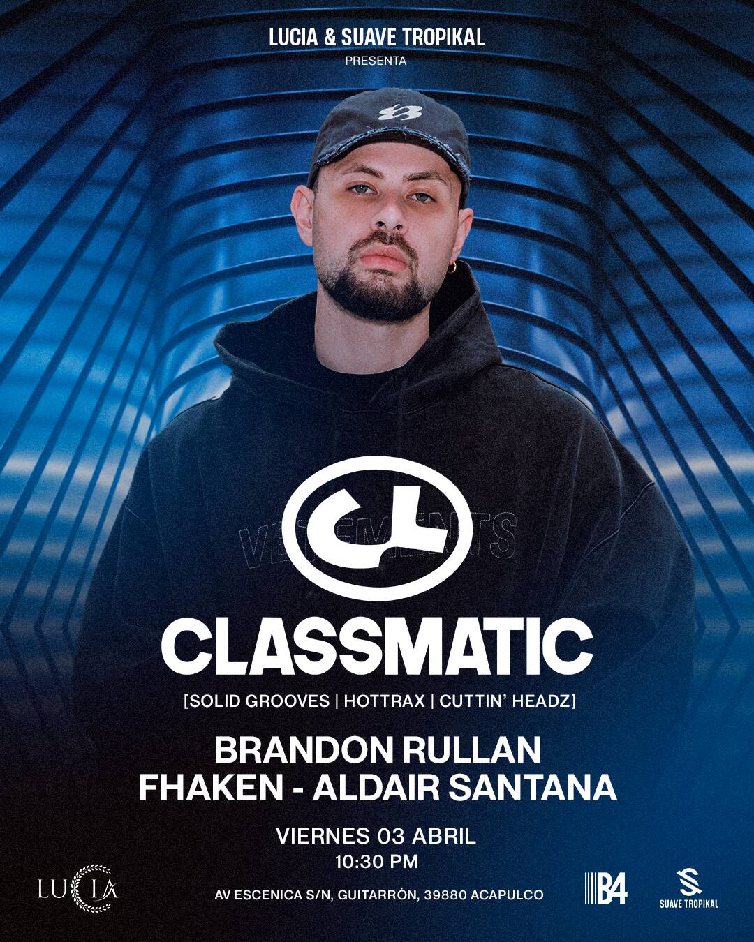 Este viernes 3 de abril de 2026 a las 10:30 PM, Lucia y Suave Tropikal presentan una noche especial con la primera visita en México de Classmatic.