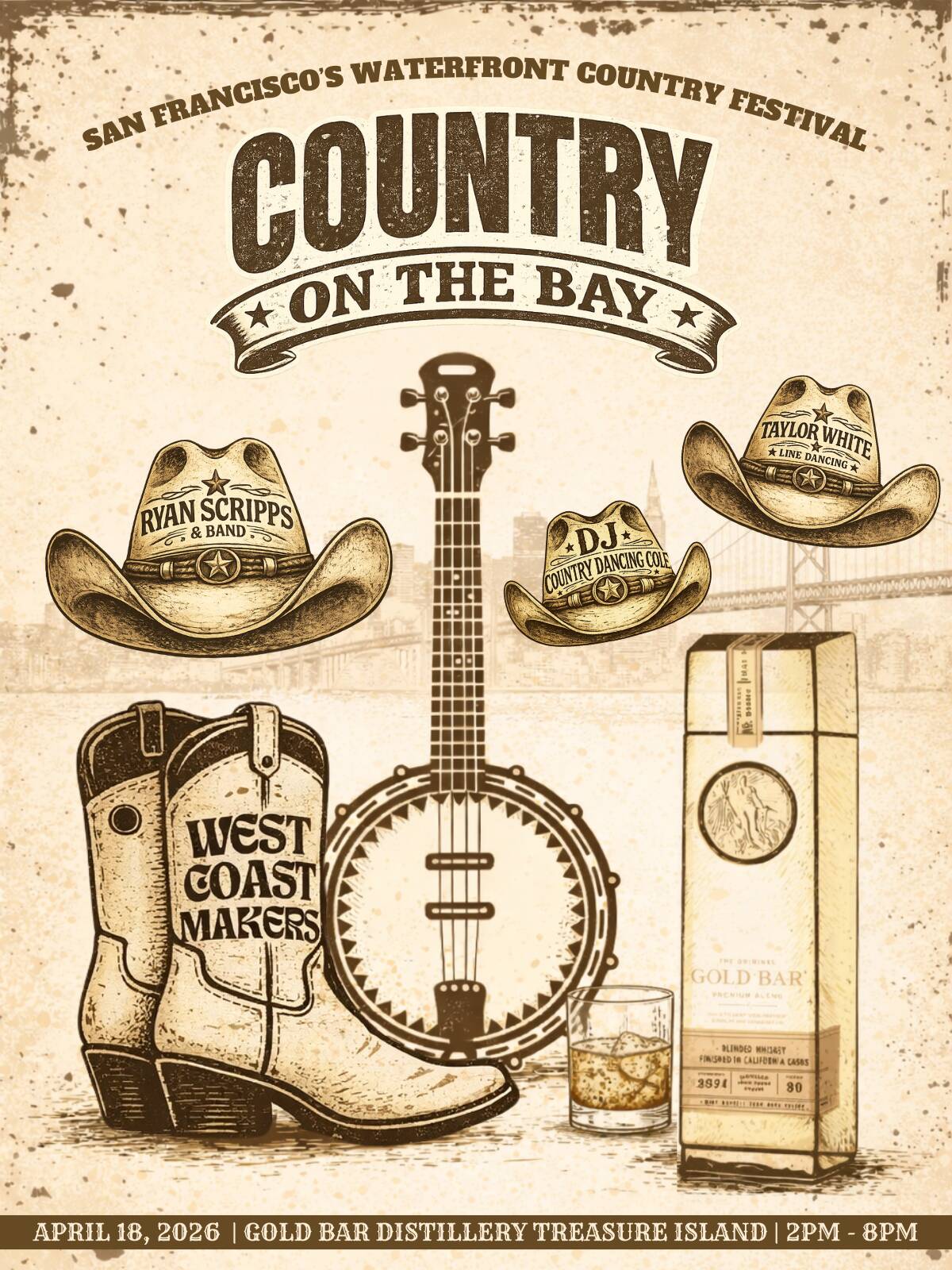 A waterfront country celebration returns to Gold Bar Distillery on Treasure Island.