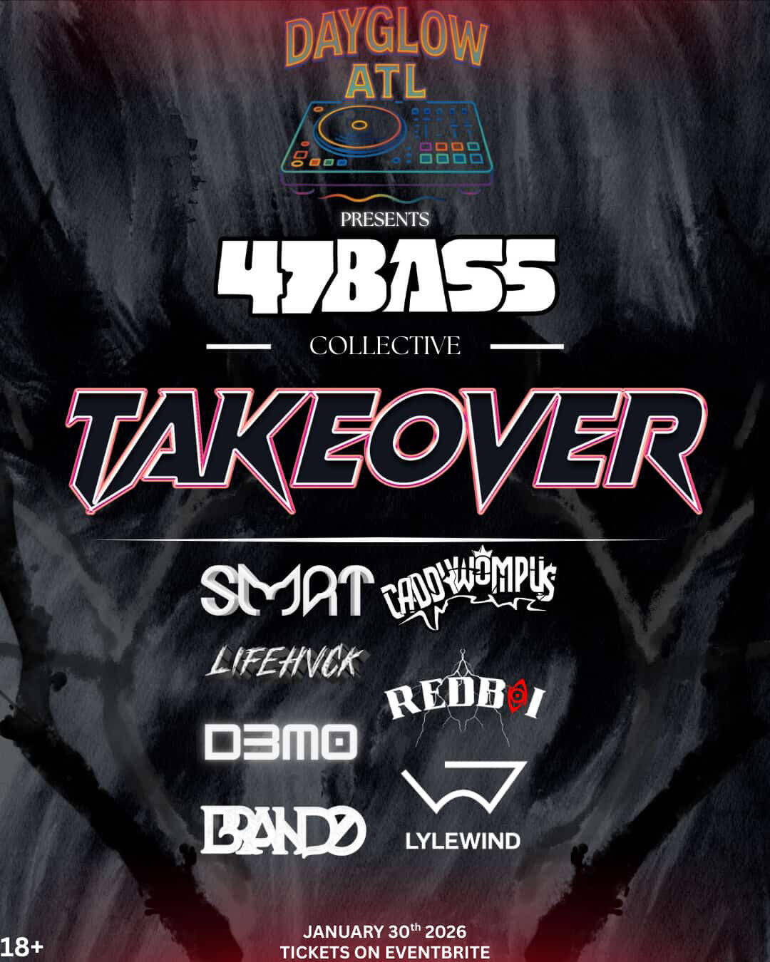 47 BASS is a collective of electronic music producers from Middle Georgia who genuinely love the scene and the people in it. What started as giving music feedback through Twitch and helping eachother grow, turned into a real community built around bass music, creativity and support. Their sound spans from agressive riddim and tearout to UKG grooves, wave, and expiremental bass. The focus has always been on connection- between artists, listeners, and the spaces that bring them together. This Atlanta showcase is about carrying that energy forward and sharing it on a bigger stage.