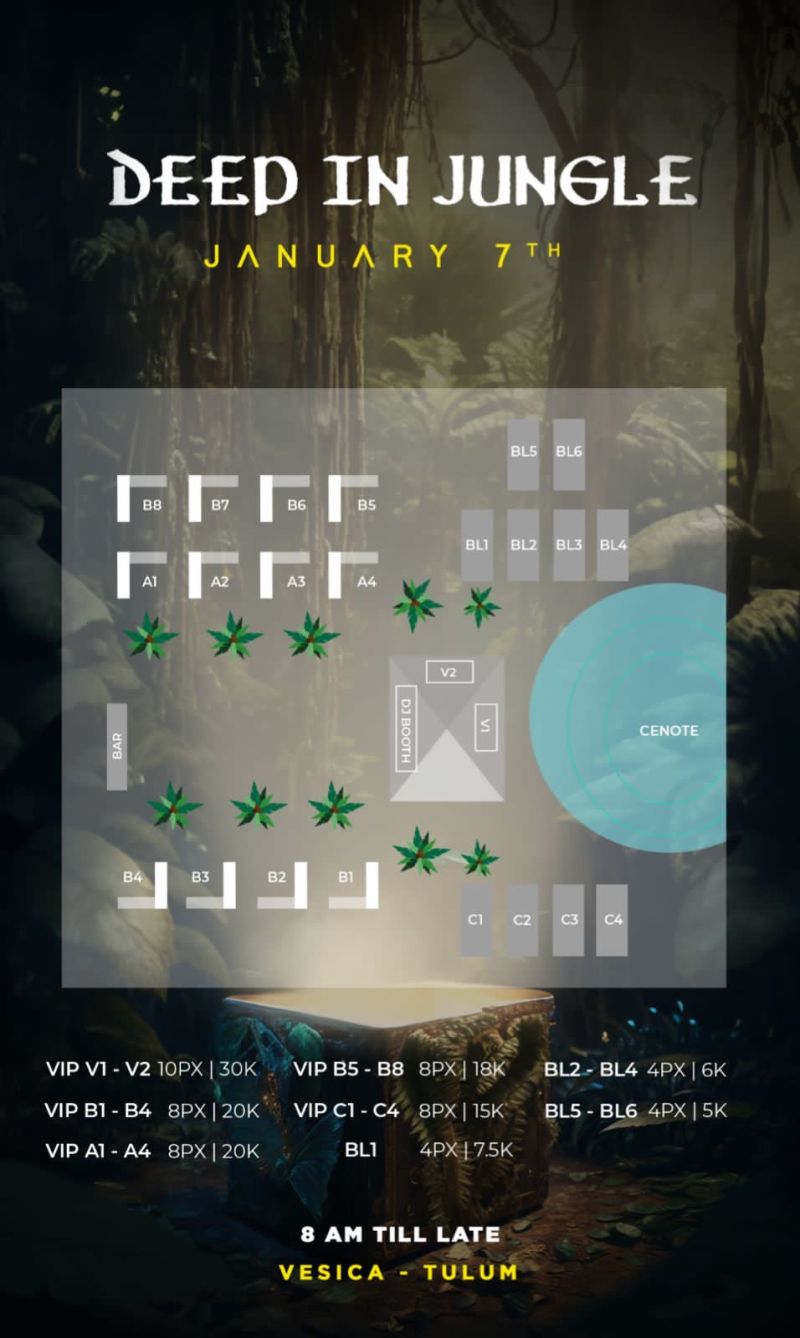 Immerse yourself in the magic of the Tulum jungle and let yourself be carried away by the rhythms of our special sanctuary. We invite you to two unforgettable editions of - Deep in Jungle - this January 5 and 7, where music will resonate in the heart of a mystical cenote. In an environment surrounded by lush vegetation and pure mysticism. Join us and you will experience a unique fusion between the energy of music and the natural beauty of the jungle.