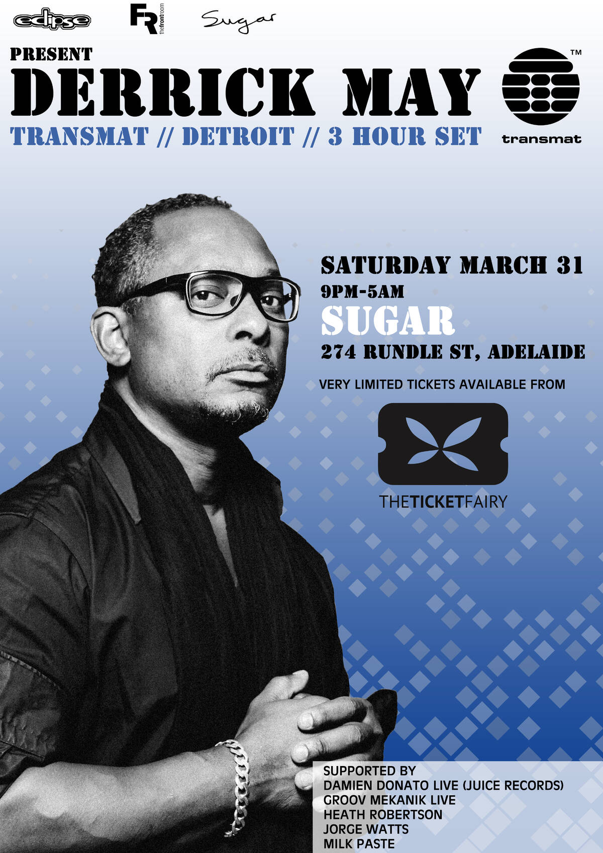 This is Derrick May's first time performing in Adelaide in 5 years and is a nod to one of Eclipse and Sugar's all time favorite parties, the last Derrick May show at Sugar all the way back in 2007. Don't miss out on this one everybody. With the limited capacity of Sugar, we expect presale tickets to sell out before the night so its first in best dressed for this very special night.