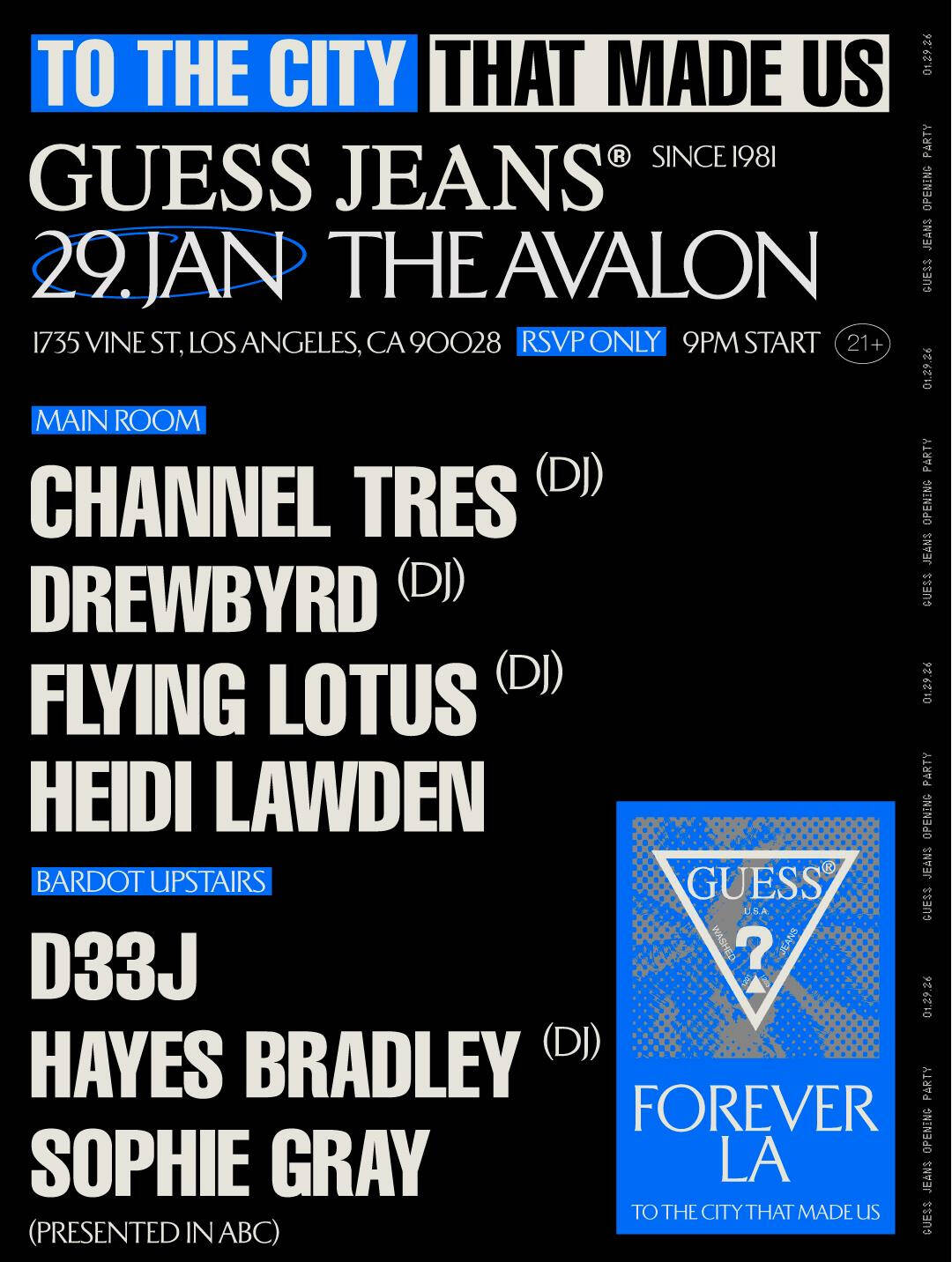 A night celebrating Los Angeles.. The culture, the music, and the community that shaped us. Join us at The Avalon for a specially curated musical evening in honor of the GUESS JEANS store opening week.