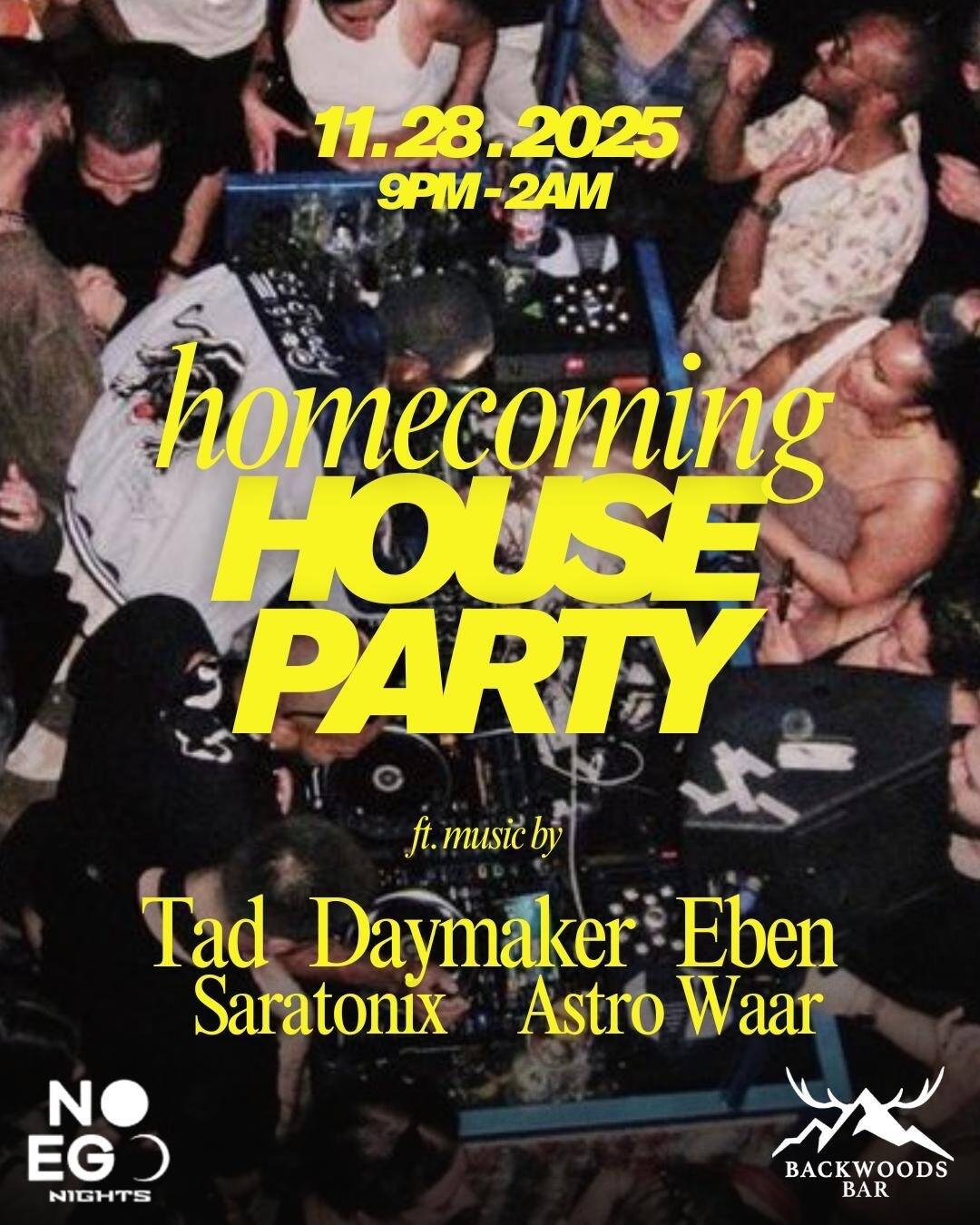 We’re throwing a Homecoming House Party that’s gonna light up the Backwoods — packed energy, sweaty walls, and pure good vibes till 2AM.