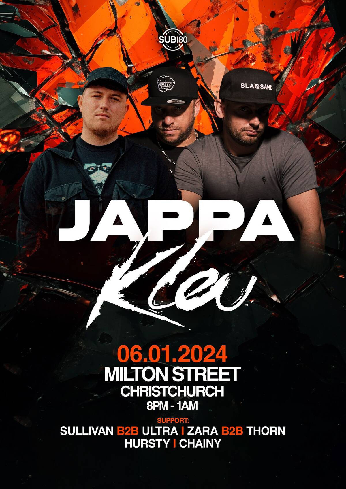 SUB180 ARE EXCITED TO ANNOUNCE: JAPPA & KLUE SATURDAY 6TH JAN 2024 TICKETS GO ON SALE THIS BOXING DAY MILTON STREET 8AM-1AM