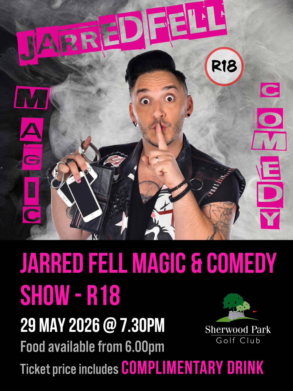 Join us at the Sherwood Park Golf Club for an unforgettable comedy evening with Jarred Fell, the international award-winning comedian and magician known for his razor-sharp wit, high-energy humour and mind-bending magic that has entertained audiences around the world.