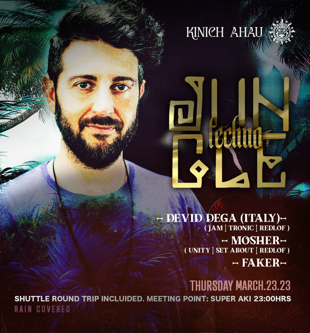 We will have a pure night of Techno Music from 11pm till Sunrise at the Jungle KINICH AHAU