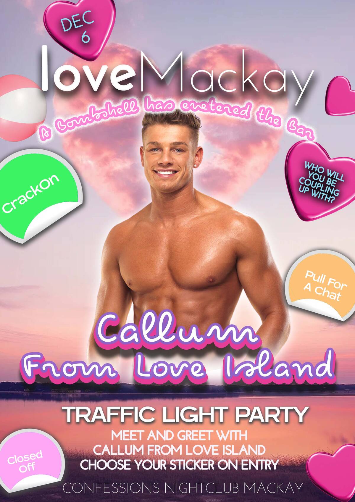 The ultimate singles party is coming to MACKAY, And who better to get the party started but the star of Love Island, Love Island Games and I'm A Celebrity Get Me Out Of Here, CALLUM! 🌴
