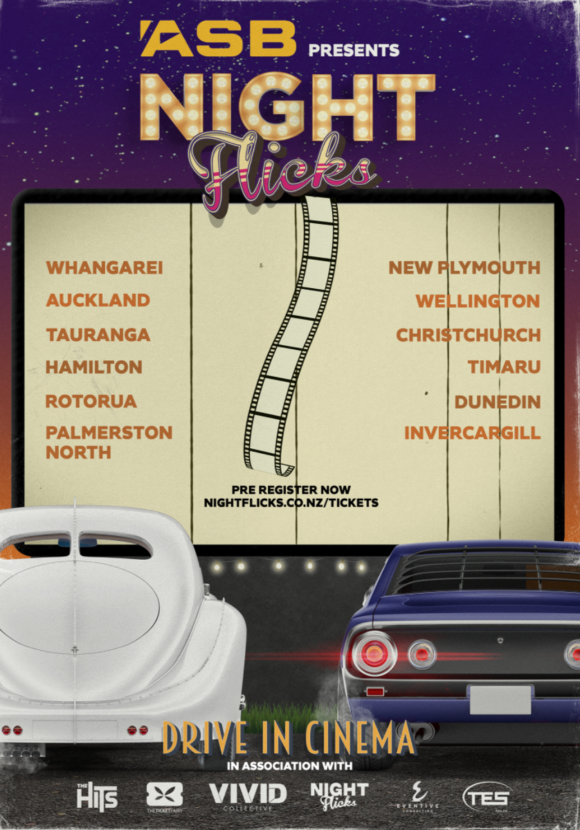 Night Flicks Outdoor Cinema & Vivid Collective are proud to announce a drive-in cinema tour of New Zealand!