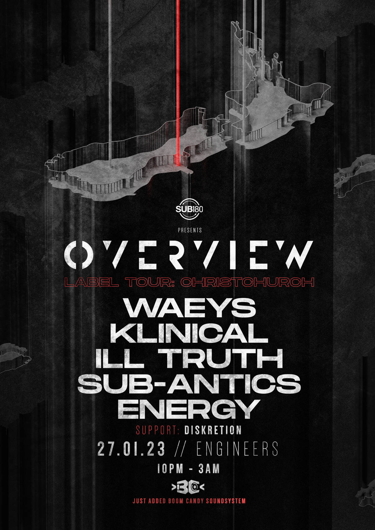 The Overview Label Tour (UK) hits Christchurch ft Waeys, Klinical, Ill Truth, Sub-Antics & Energy on one of the best soundsystems in NZ BOOM CANDY!