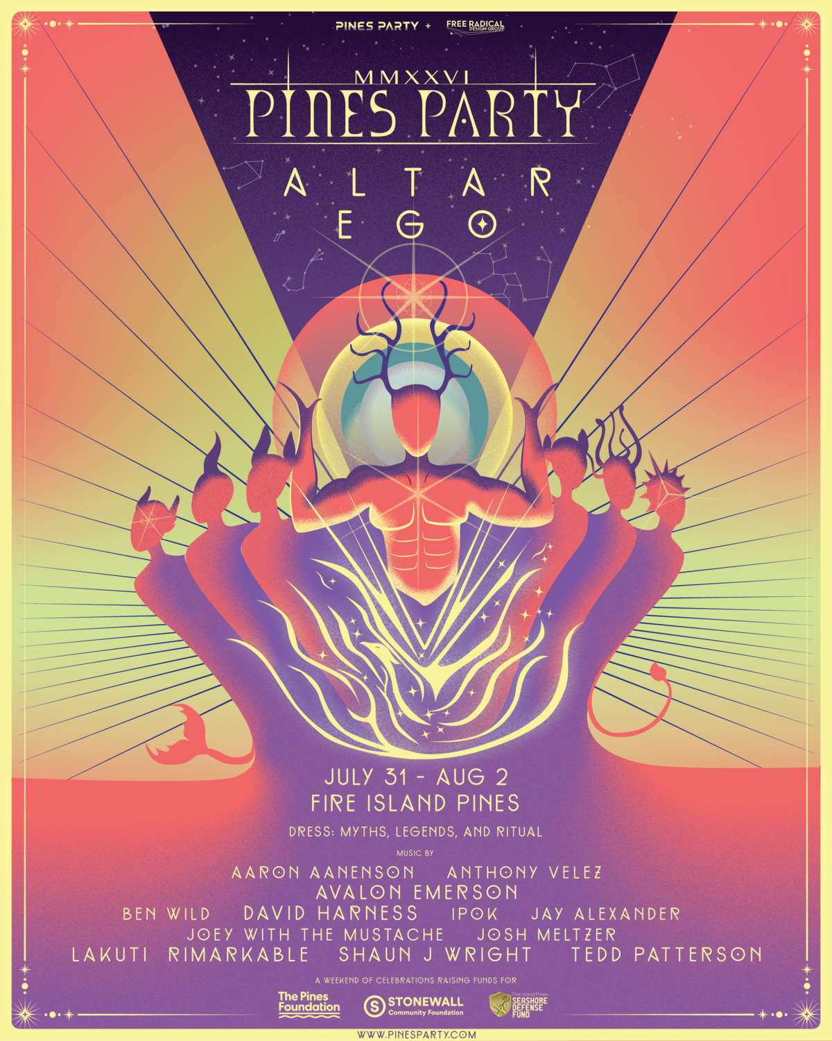 More than just a celebration, Pines Party is a powerful act of community. As the pinnacle of the summer season, it raises critical funds for Stonewall Community Foundation, The Pines Foundation, and the Seashore Defense Fund, a network of local charities that sustain and protect our shared home.