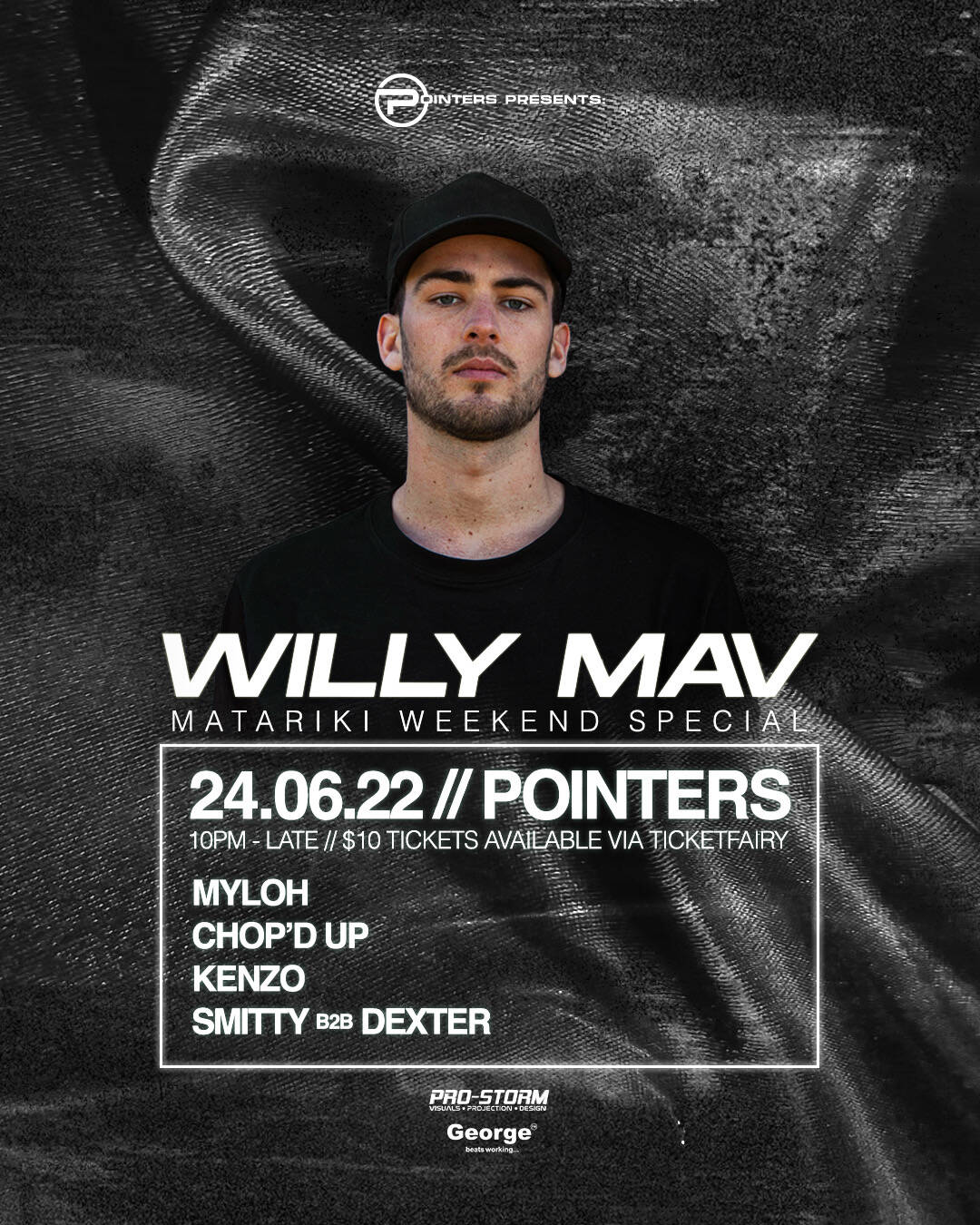 Pointers is excited to present undoubtably one of the fastest rising stars in NZ DNB, Willy Mav for your Matriki Long weekend special 😤