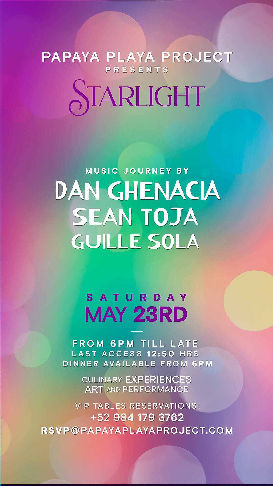 🍽️ Access to the Mayan Dinner Experience – Ancestral flavors, fire-lit night. A menu crafted from tradition, served in a candlelit jungle setting. 🎶 Entry to the iconic Papaya Playa Project event , where music and nature align under the full moon.