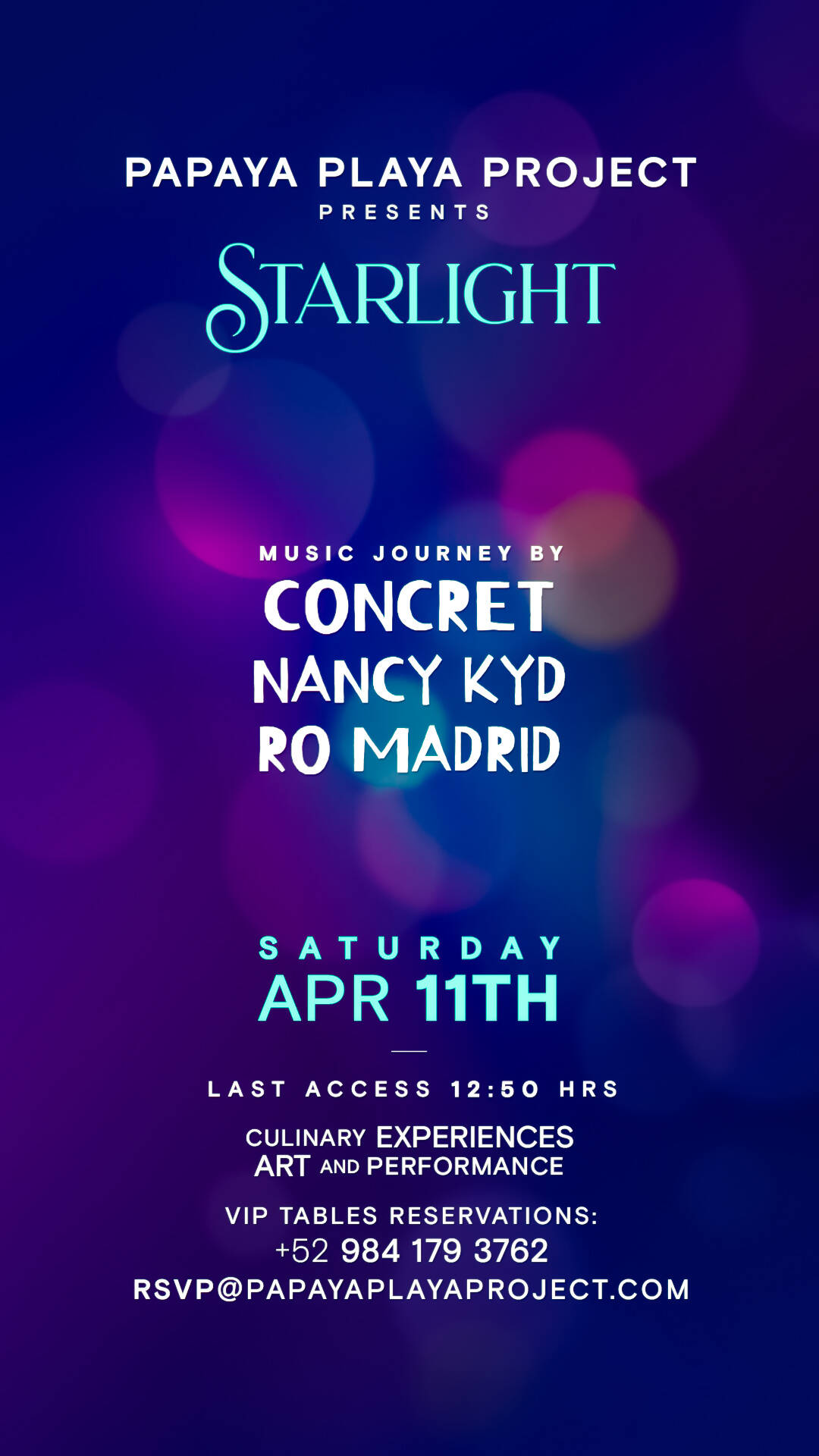 🍽️ Access to the Mayan Dinner Experience – Ancestral flavors, fire-lit night. A menu crafted from tradition, served in a candlelit jungle setting. 🎶 Entry to the iconic Papaya Playa Project event , where music and nature align under the full moon.