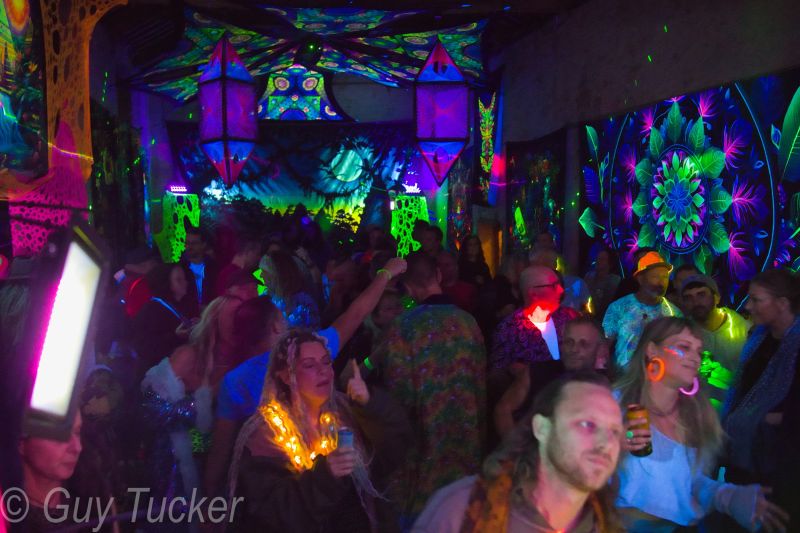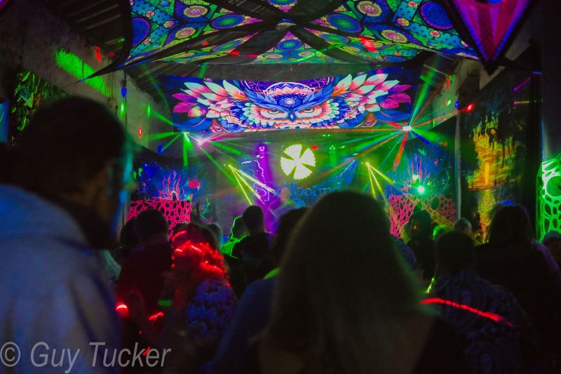 Over 40 hours of psytrance through a high quality sound system and a full UV Environment, in a barn near Shepton Mallet, Somerset.