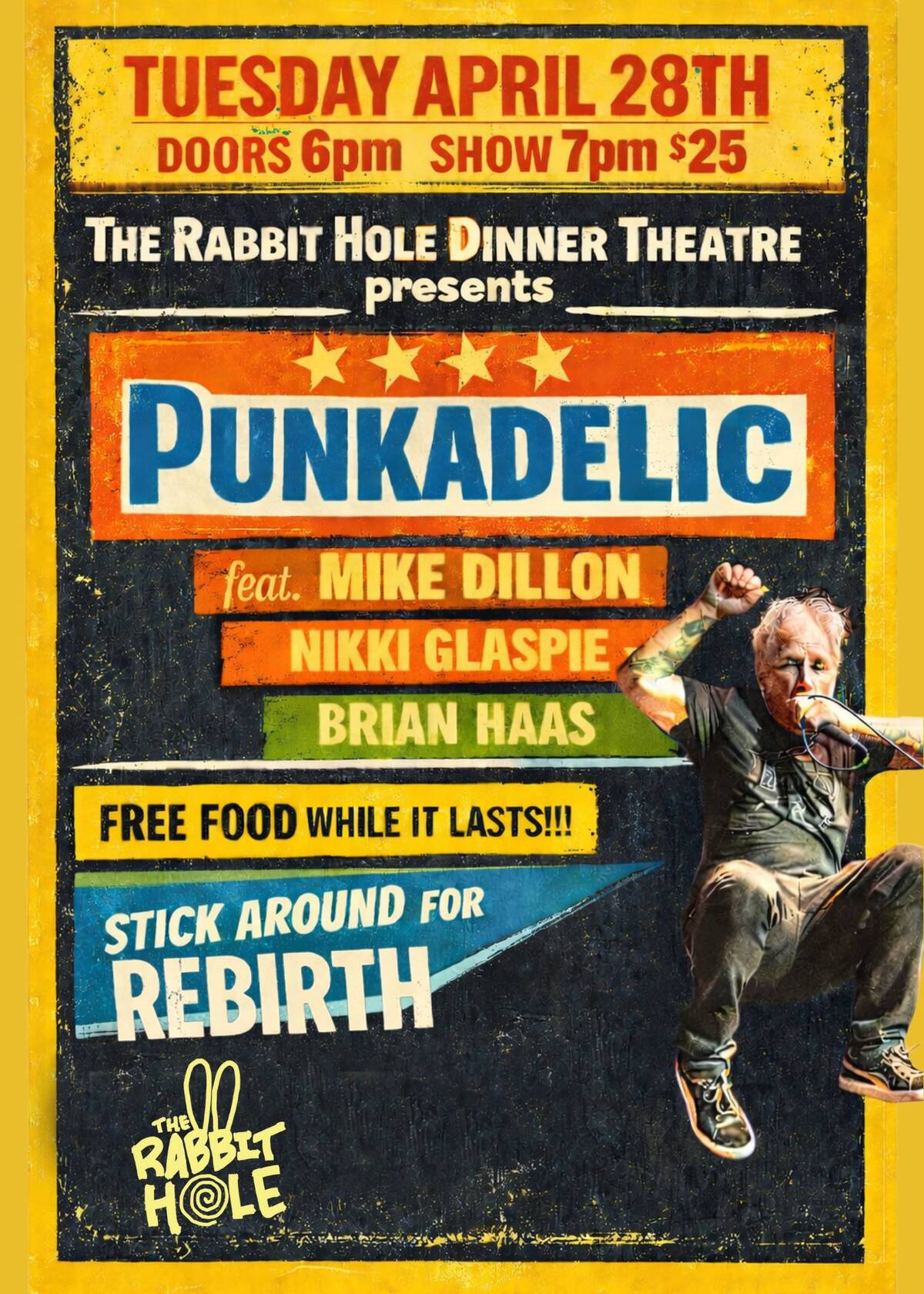 The Rabbit Hole Dinner Theatre presents PUNKADELIC featuring Mike Dillon, Nikki Glaspie & Brian Haas.