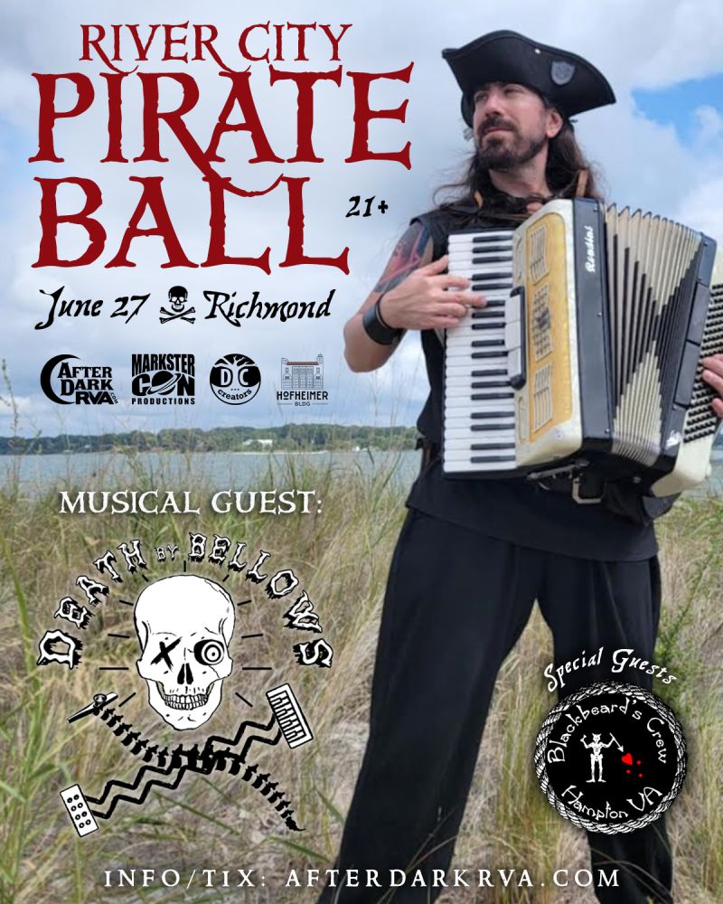 On June 27th, 2026 we’re celebrating the pirate spirit in a city with deep maritime roots. Richmond, once a favored stop for pirates navigating the James River, has long been known for its waterway history. Now, it’s your chance to immerse yourself in the swashbuckling world of piracy right here in the "River City" with the return of Richmond's PIRATE BALL (21+) - presented by After Dark RVA!