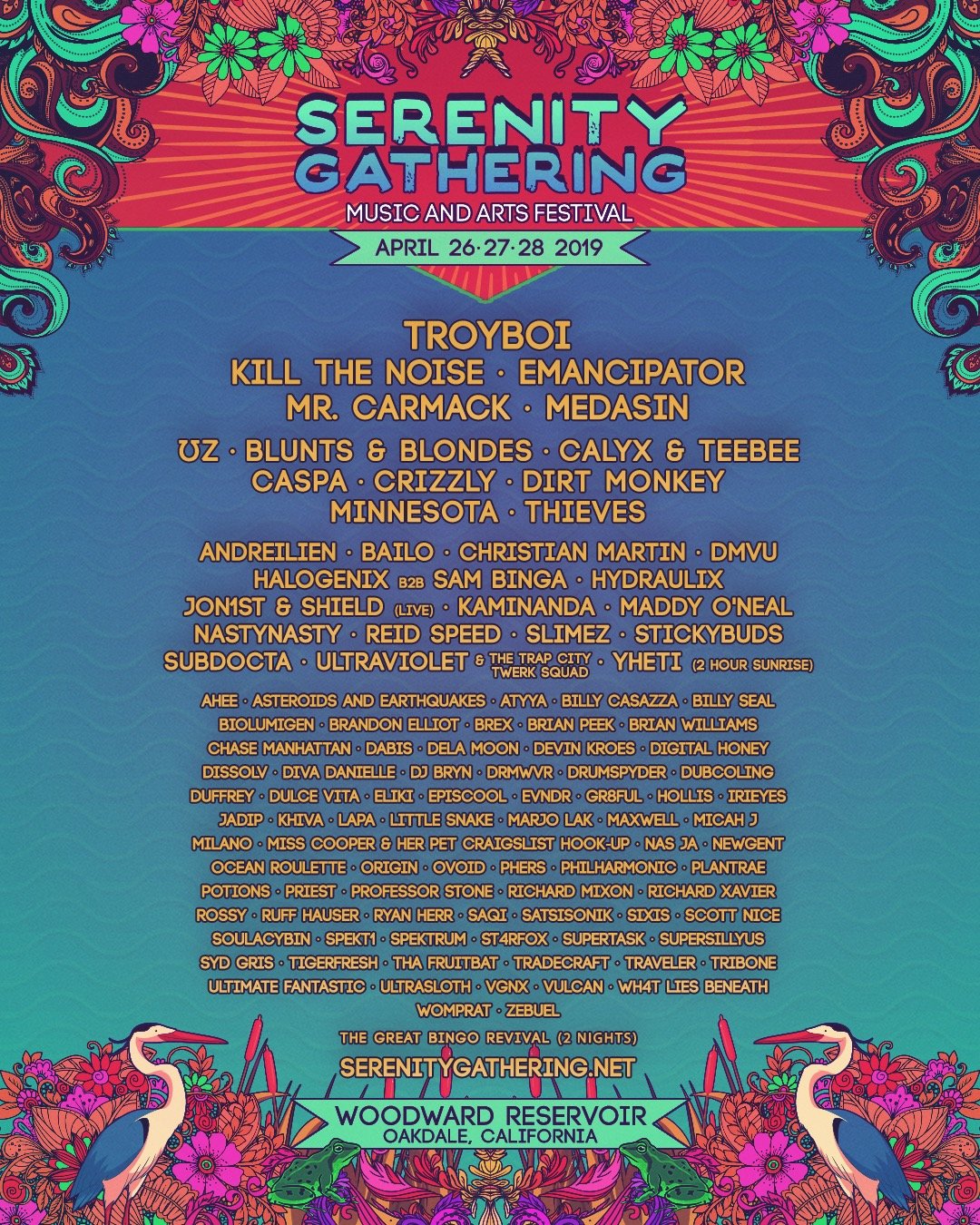 TroyBoi, Kill the Noise, Emancipator, Mr. Carmack, Medasin, UZ, Blunts & Blondes, Calyx & Teebee, Caspa, Crizzly, Dirt Monkey, Minnesota, Thieves, Andreilien, Bailo, DMVU, Hydraulix, Jon1st & Shield (live) Kaminanda, Maddy O'Neal, NastyNasty, Reid Speed, Sam Binga B2B Halogenix, Slimez, Stickybuds, SubDocta, Yheti (sunrise set) & many more!