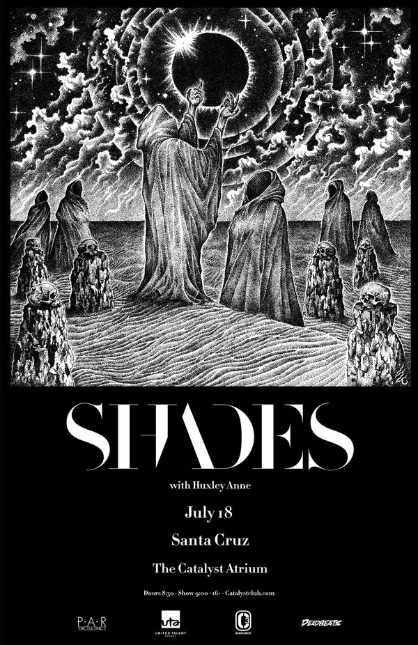 2018 will see the release of their debut full - length album, ‘In Praise Of Darkness’, signed to Zeds Dead's highly acclaimed imprint, Deadbeats Records. It is a 12 track saga of varying sounds and tempos, and includes the revered UK MC, Killa P. 2017 saw the release of their 4th EP, ’Night of the Dreadless Angel’, which is a graceful movement in bass music. It is the first release that sees SHADES collaborate with anyone else. As comrades and pioneers in the half -time, it made Ivy Lab the perfect partners.