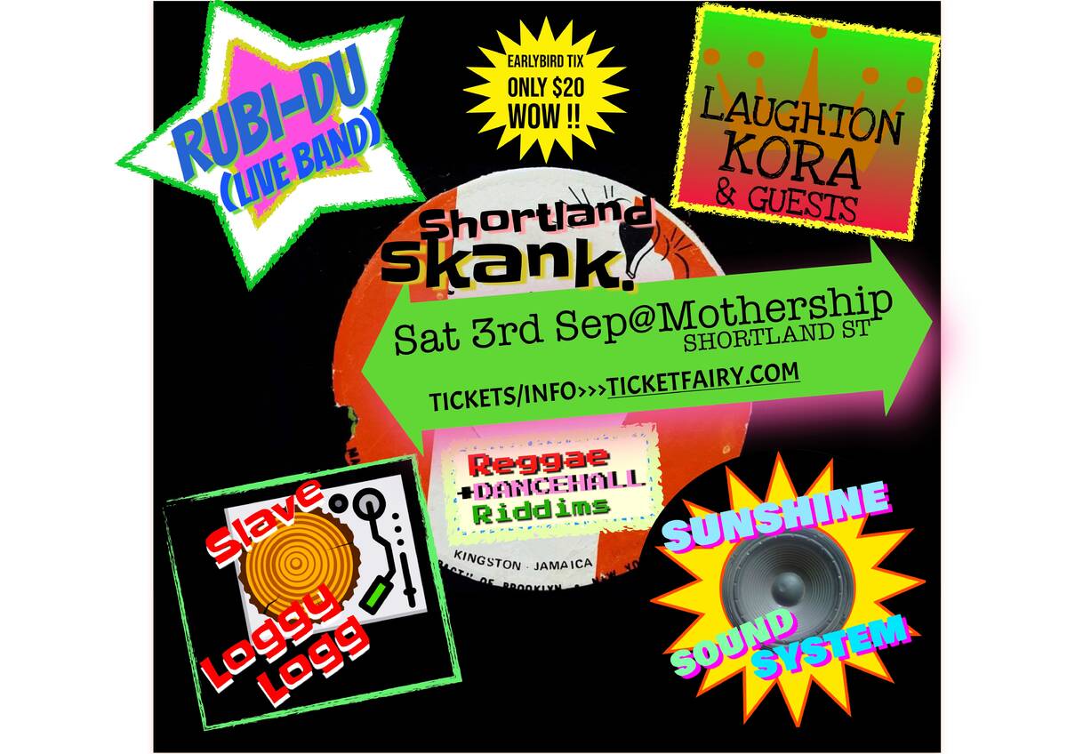 Massive Reggae Dancehall and Jungle vibes touch down for SHORTLAND SKANK !! Sat Sep 3 @ The Mothership (Shortland St, Auckland CBD).