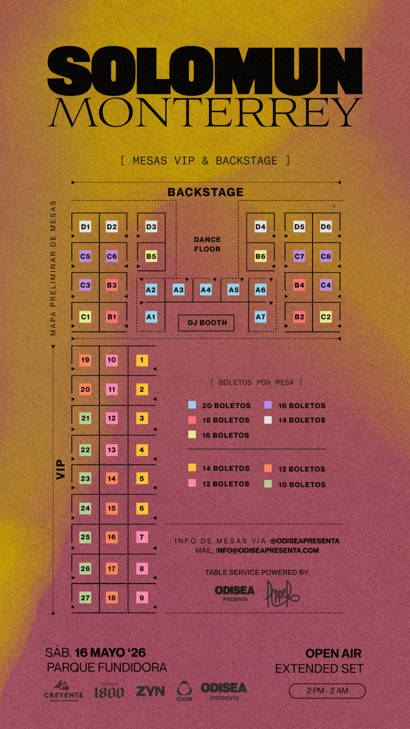 Para información sobre zonas VIP o Backstage, contáctanos a través de nuestro canal oficial:
