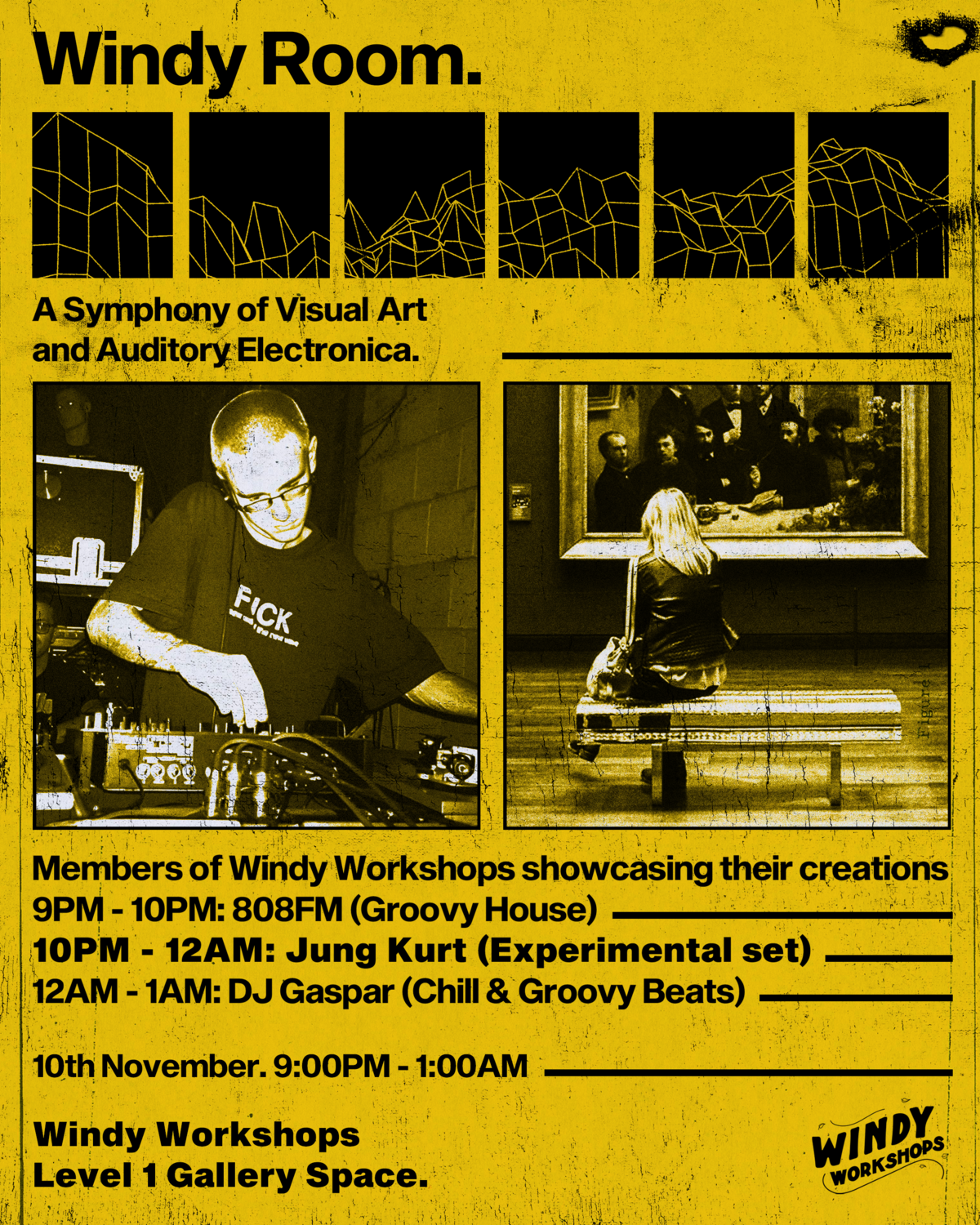 The Windy room is an experience where immersion is involuntary. Taking place will be a collective art exhibition featuring Windy Workshop’s finest, infused with a thick, full-length atmospheric journey of experimental dance music spanning various genres. This experience will make love to your eyes and ears.