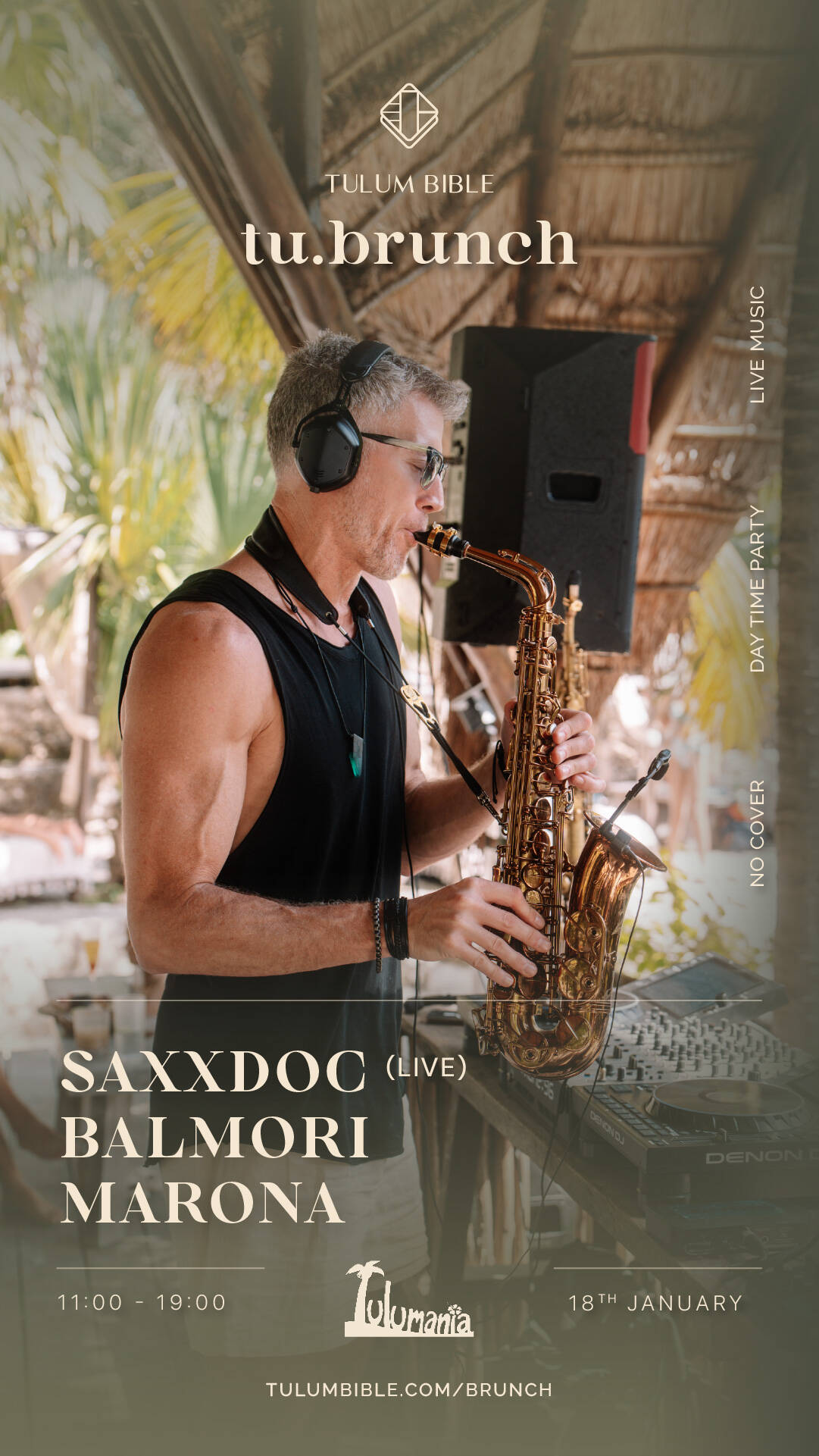 Expect a high-energy Sunday by the beach, with music playing throughout the day, space to dance, connect, and enjoy the moment, and a crowd that comes ready for good vibes. Tulumania offers great food and drinks, comfortable beachfront areas, and the perfect setting to enjoy sunshine, music, and the Tu Brunch atmosphere from day into sunset.