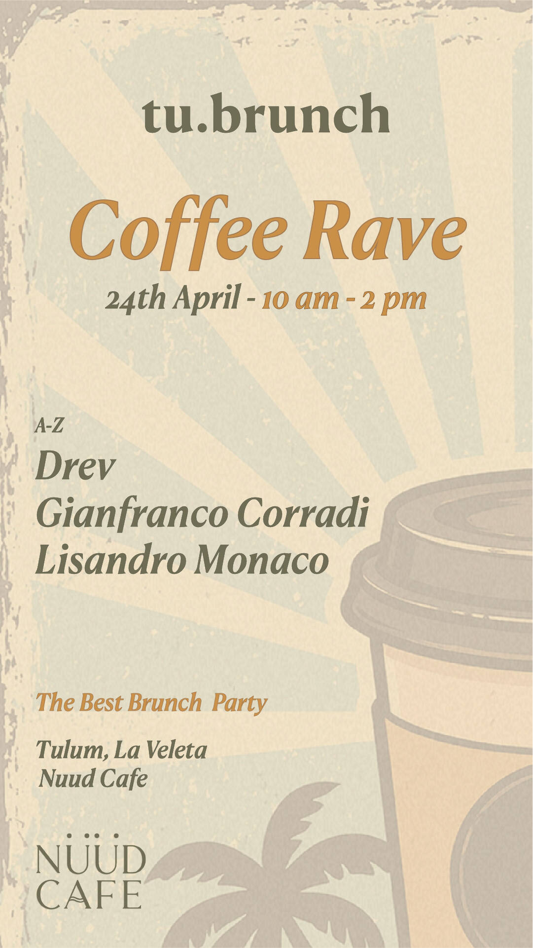 We’re inviting everyone to join us for the first Tu Brunch Coffee Rave at Nuud Café, La Veleta.
