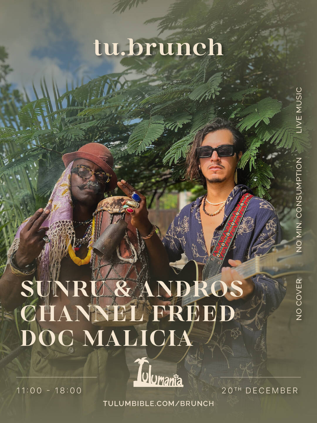 Expect a high-energy Sunday by the beach, with music playing throughout the day, space to dance, connect, and enjoy the moment, and a crowd that comes ready for good vibes. Tulumania offers great food and drinks, comfortable beachfront areas, and the perfect setting to enjoy sunshine, music, and the Tu Brunch atmosphere from day into sunset.