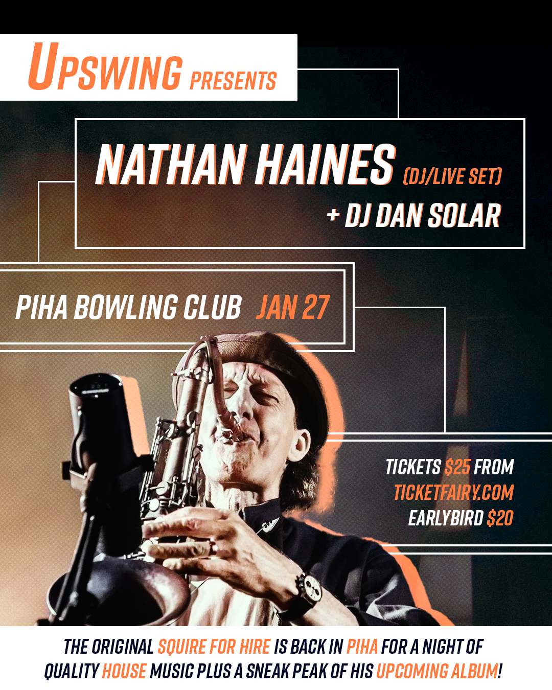 The Upswing is back at the iconic Piha Bowling Club on January 27th and we are excited to host one of New Zealand’s dance music legends, the ever soulful Nathan Haines!