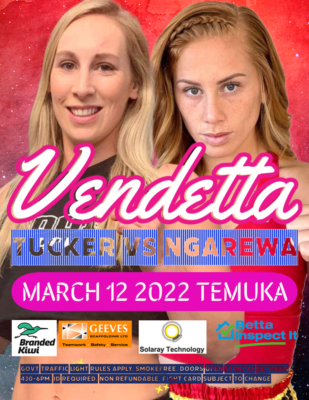 Vendetta has become one of the biggest Muay Thai events in New Zealand with a regular pilgrimage for many fighters and fans from all over Aotearoa getting to this event. This will be the 5th year of the show, with the past 4 all selling out well before the event date.