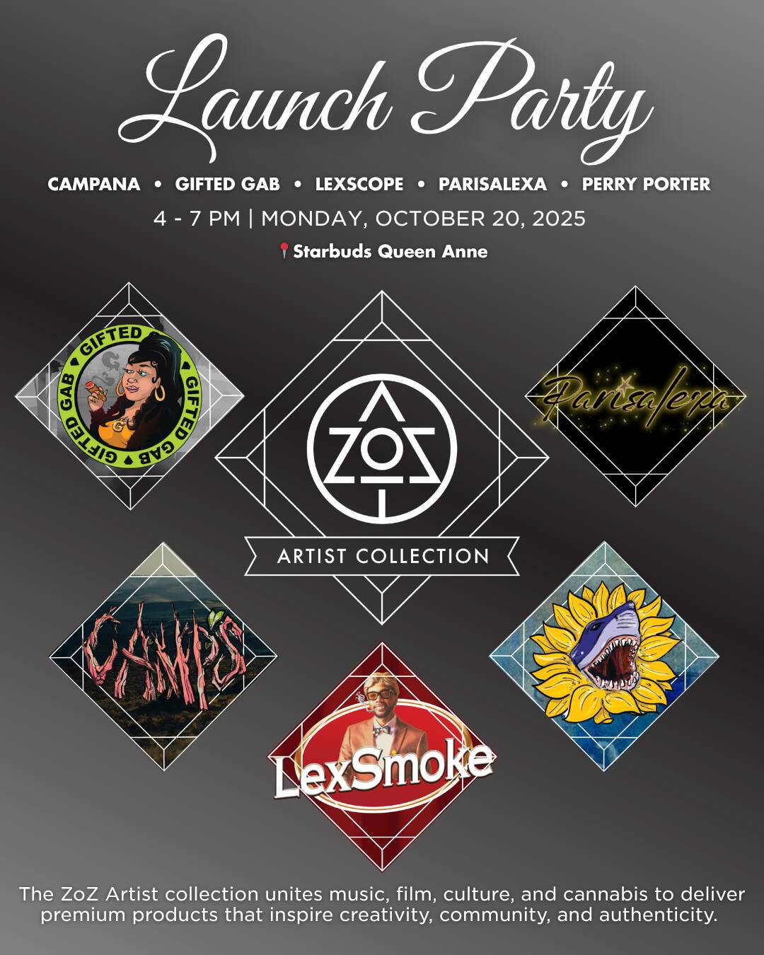 Each artist in the collection has curated three strains, blending their creative vision with ZoZ's signature small-batch, handcrafted approach to premium cannabis. This is more than a product launch—it's a celebration of the artists, musicians, filmmakers, and cultural innovators who define Washington's creative soul.